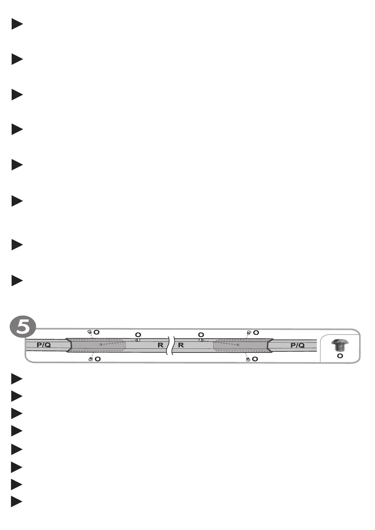Dla zabezpieczenia rur "R" z rurami "P" lub "Q", przykręć śruby "O" w dziurach rur. Minimalna zakładka rur to 20cm.