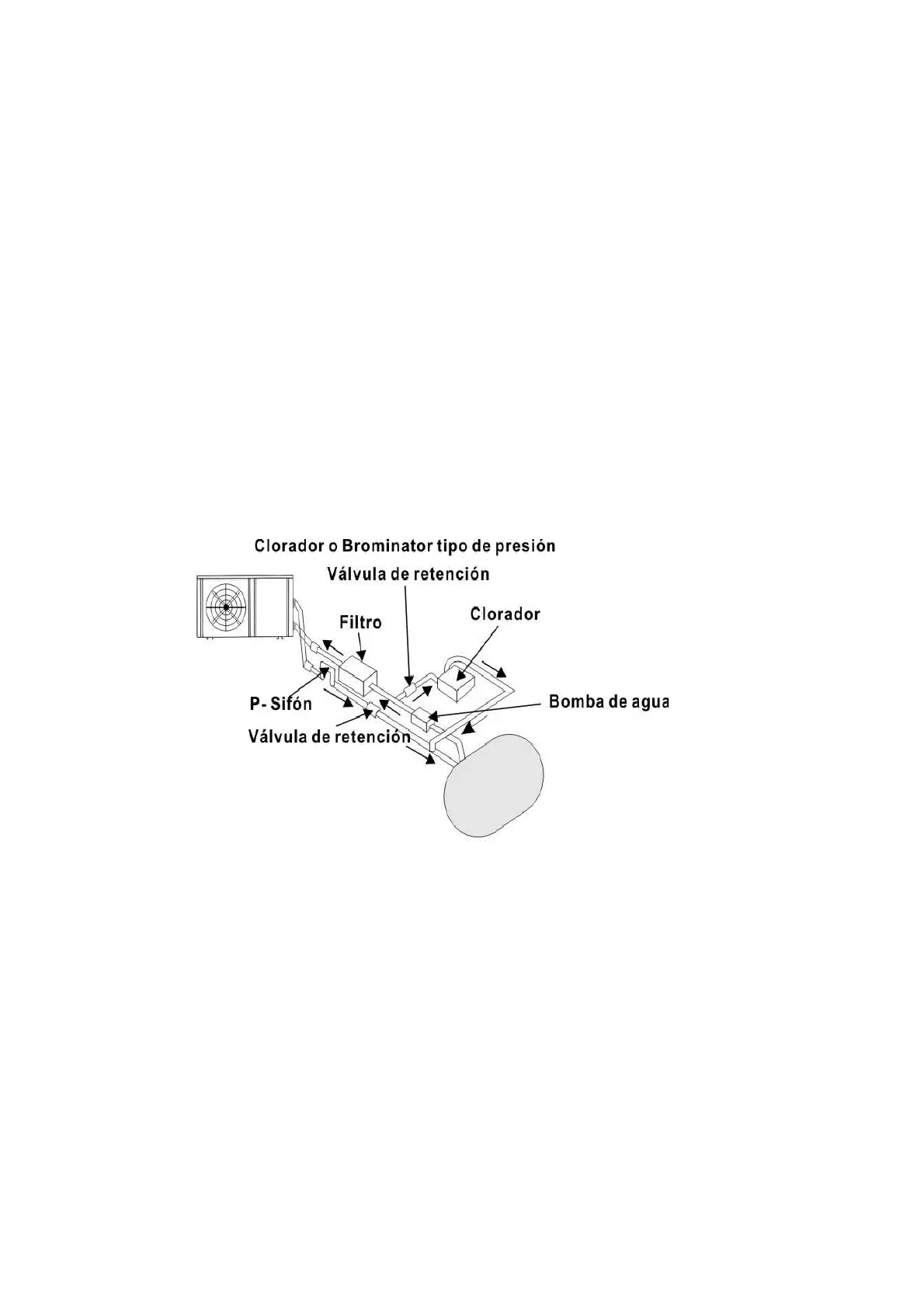 la bomba de calor aguas abajo y se recomienda instalar una válvula de retención para evitar el flujo