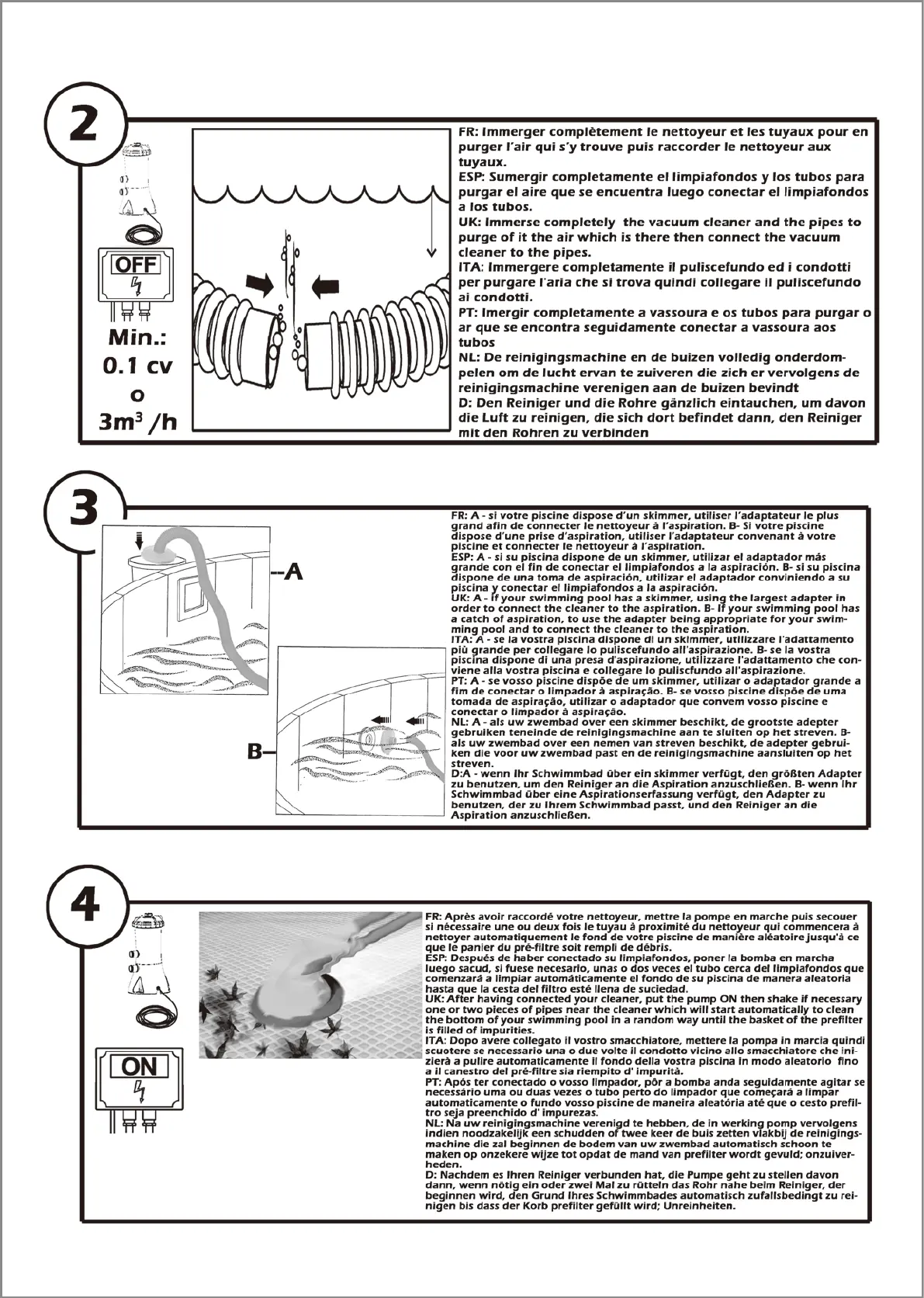 GRE 90399 - Step 2: Cleaner Immersion and Connection; Immersion and Air Purge; Step 3: Connecting to Pool Suction; Skimmer or Suction Port Connection
