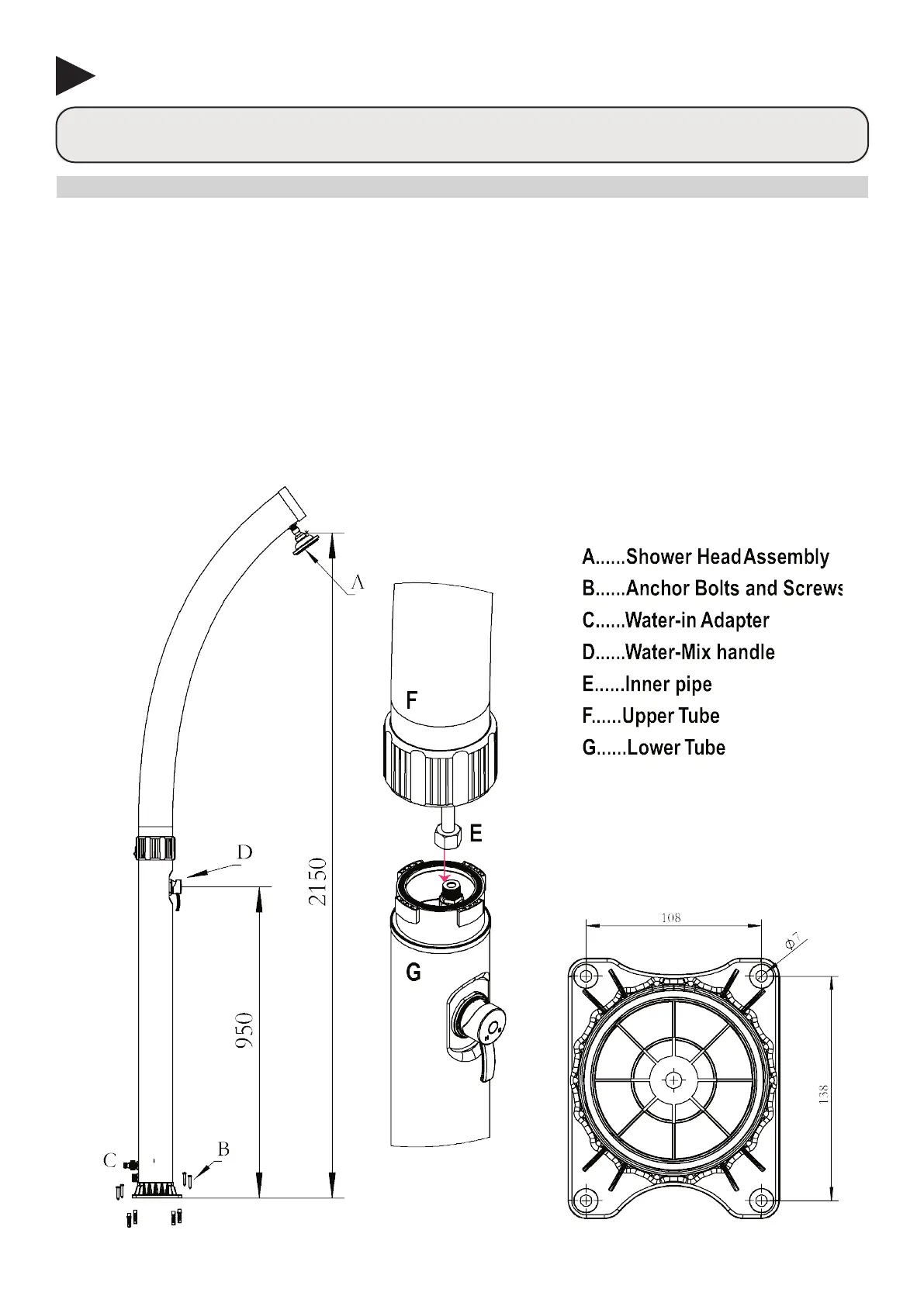 • Turn locking ring clockwise to securely connect F(upper tube) to G (lower tube).