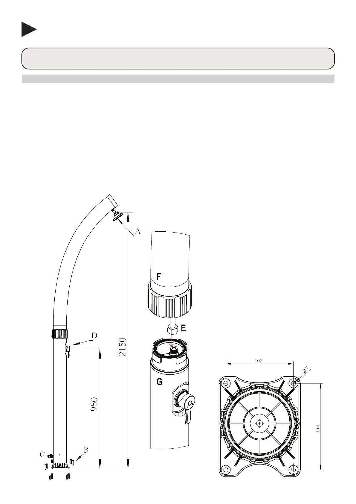 • Montieren Sie die Dusche vertikal zum Boden mit B.