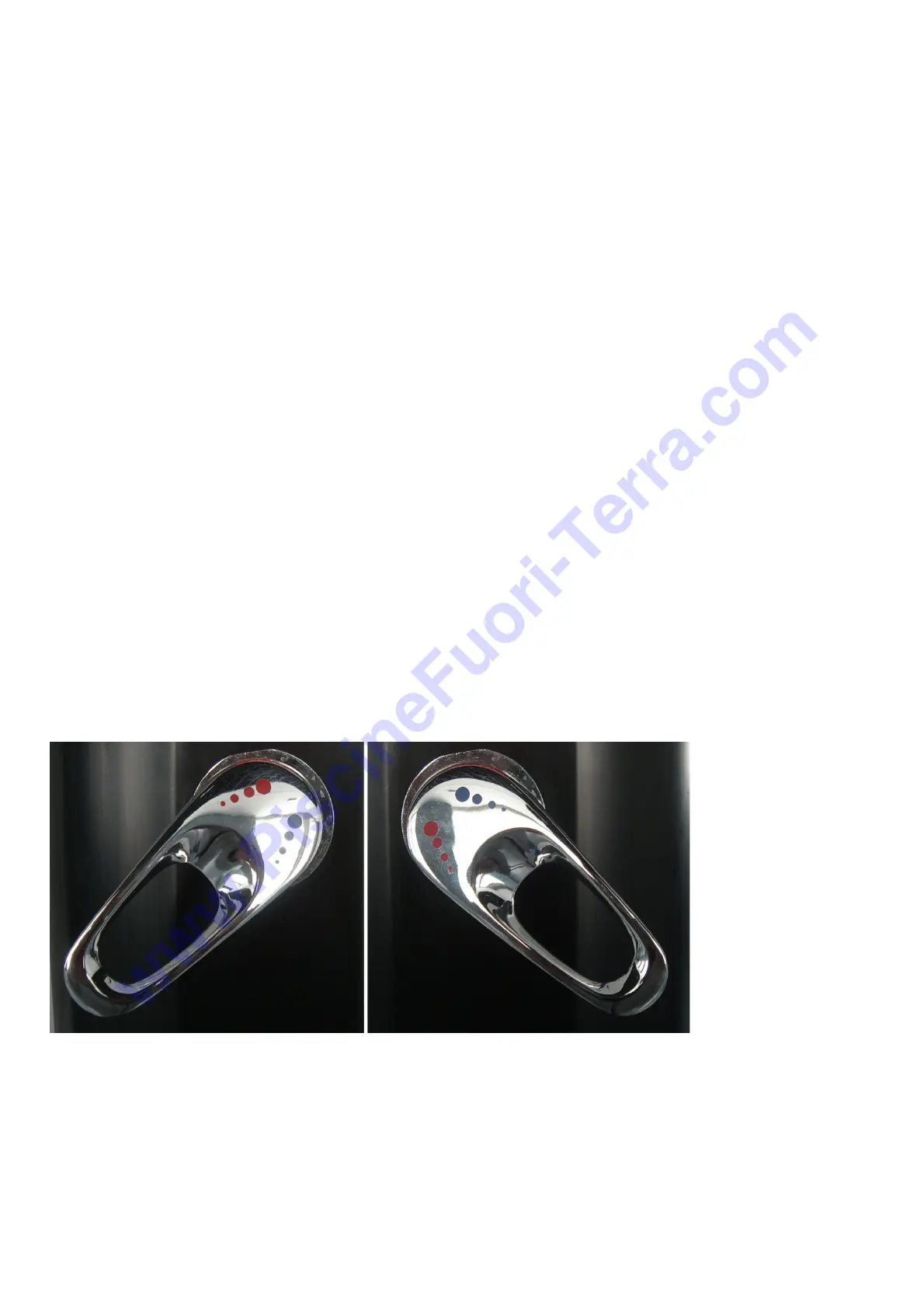 Flowing pictures show you the hot and cold water handle position, Turn to blue side, it is