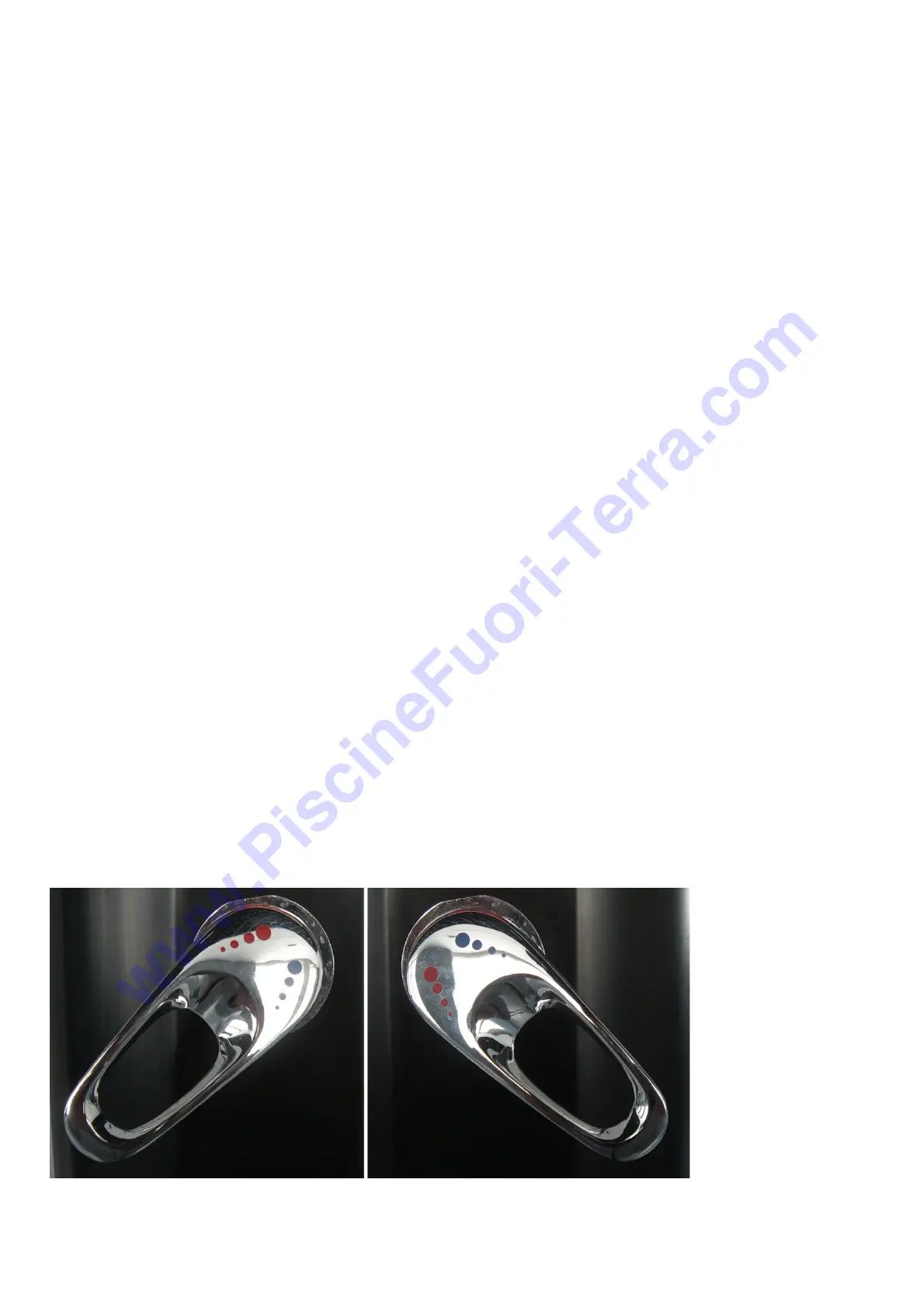 Las imágenes muestran la posición de la empuñadura del agua caliente y fría, girando