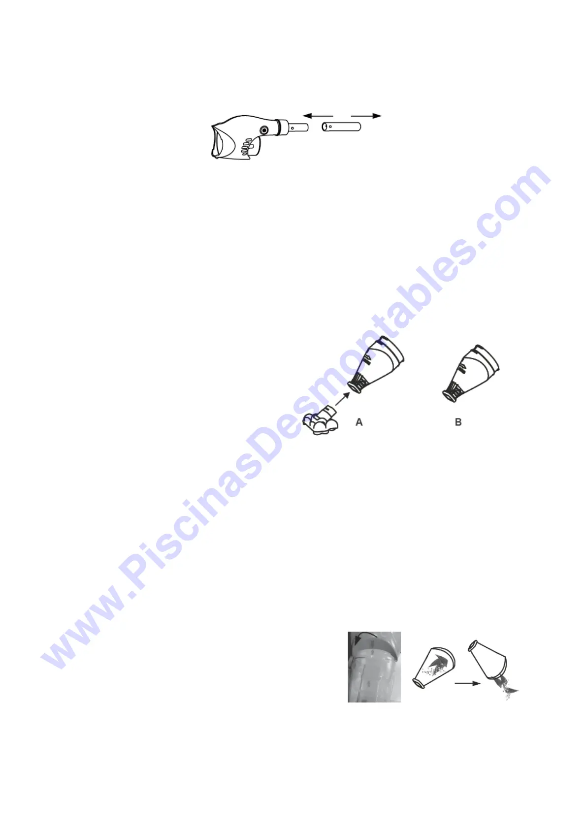 cleaner. Slide and align the side holes of the telescopic with the side pins of the