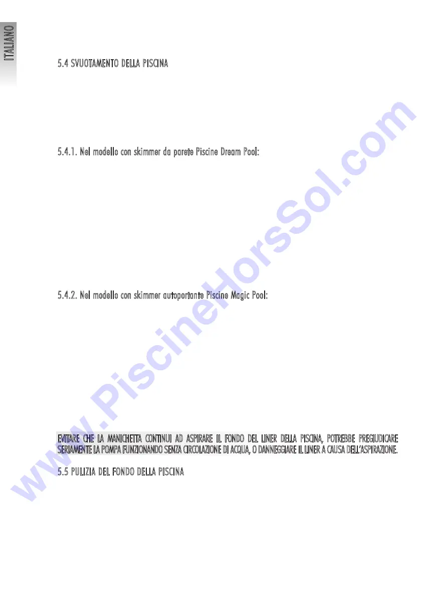 totalmente la piscina, quando resteranno alcuni centimetri di acqua e la pompa non aspiri più, bisognerà spegnerla.