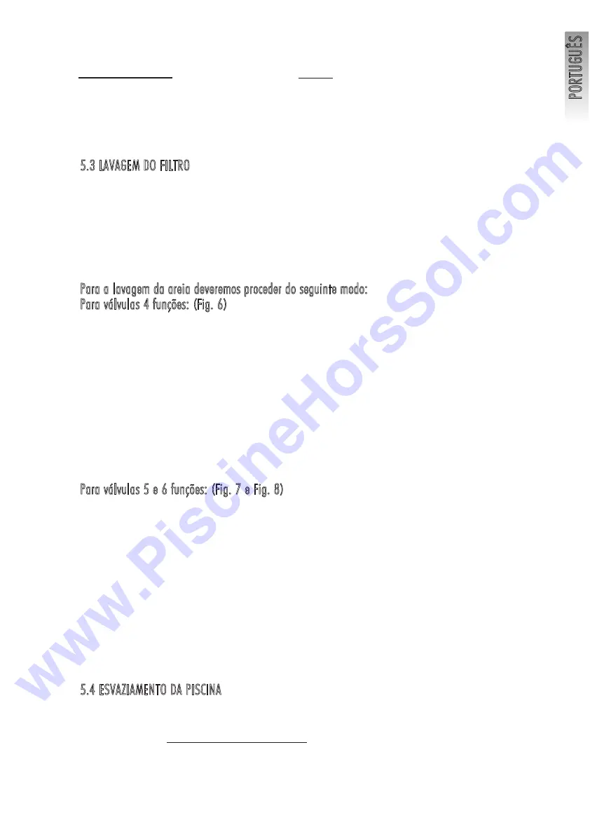colocar a válvula selectora superior na posição de esvaziamento (waste) (Fig. 6)(Fig. 7), sem ligar o filtro, ligando a