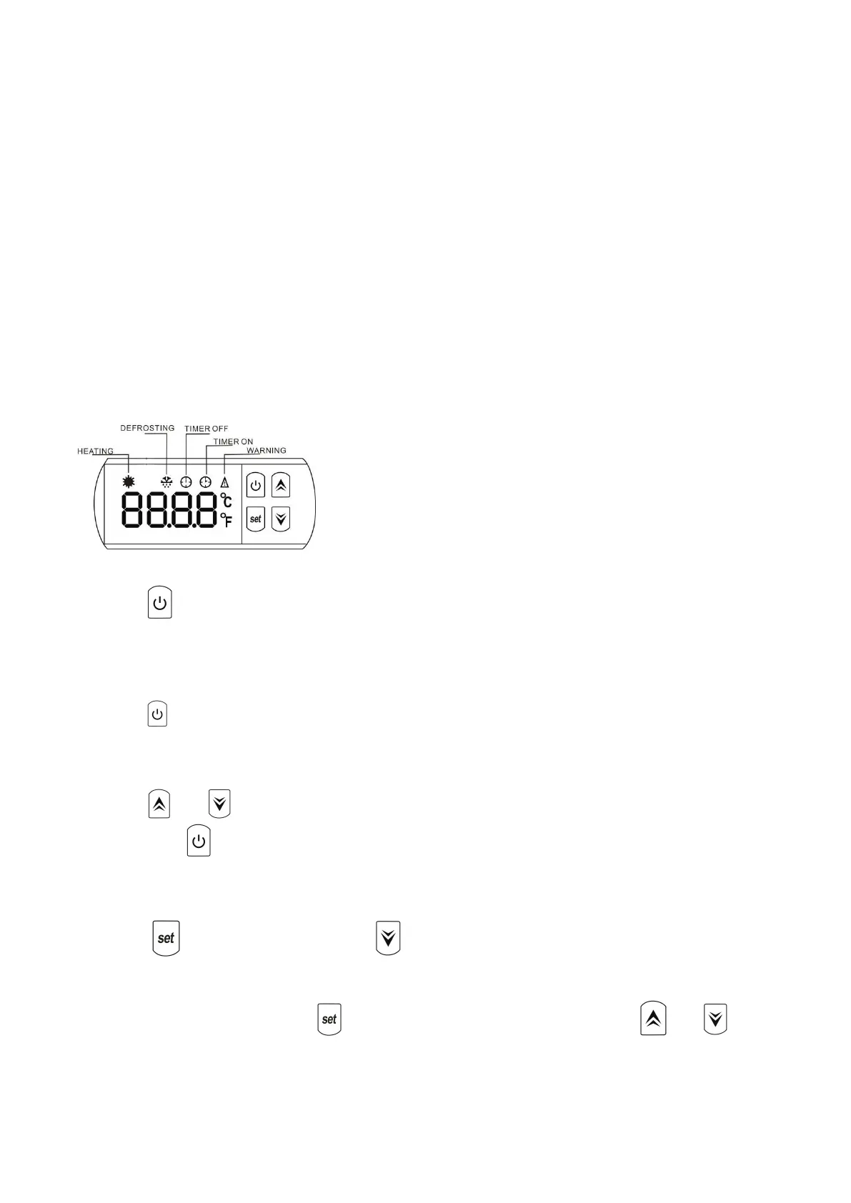 Dücken Sie , um die Wärmepumpe anzustellen. Die LED Aneige zeigt die Wassertemperatur des Eingangs und