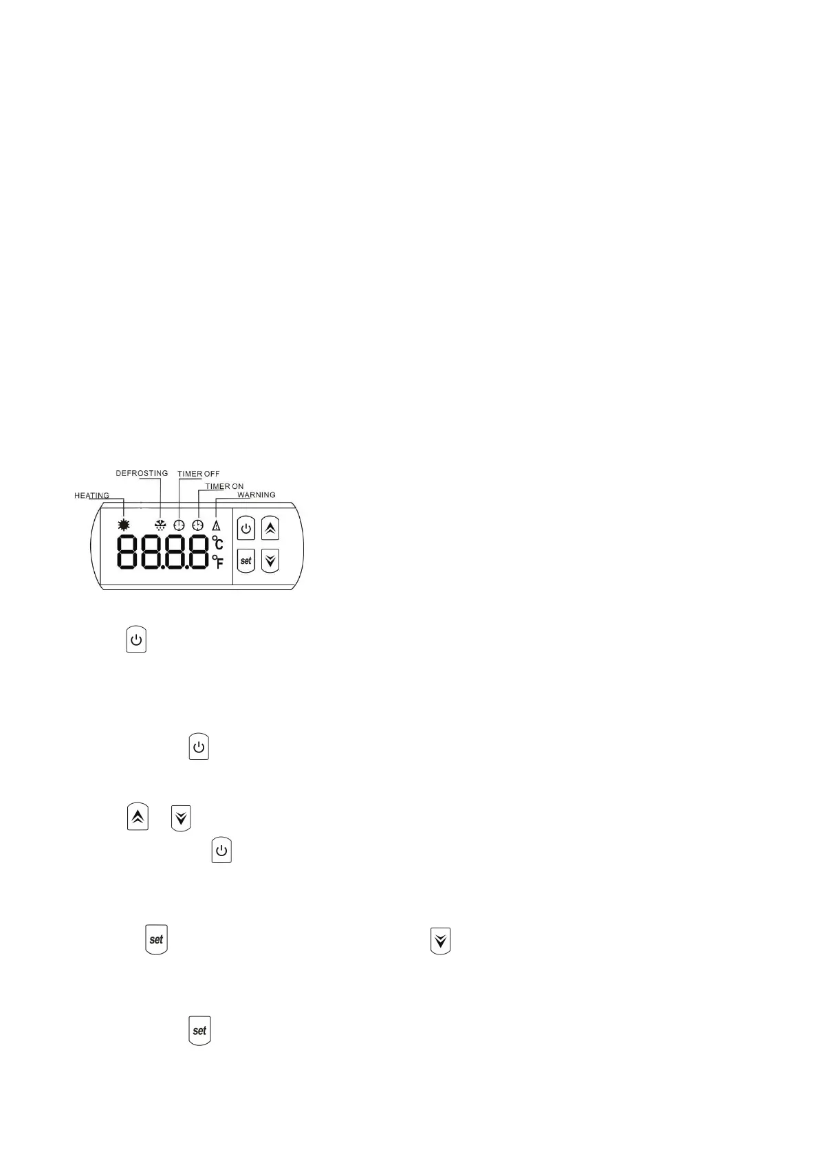 Druk op teneinde de warmtepomp te starten, het LED-display zal de watertemperatuur inlaat weegeven