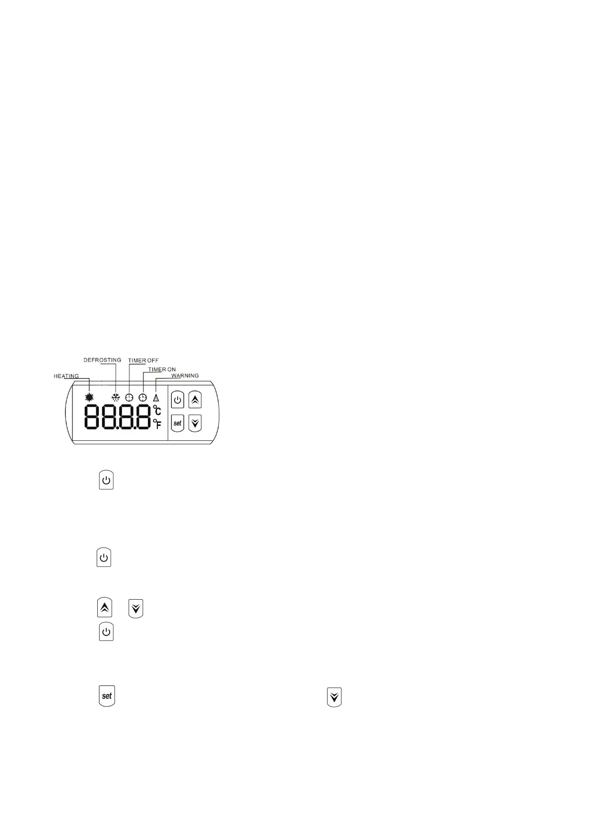 Pressione mais uma vez para parar a bomba de calor, o display LED mostra ‘OFF’