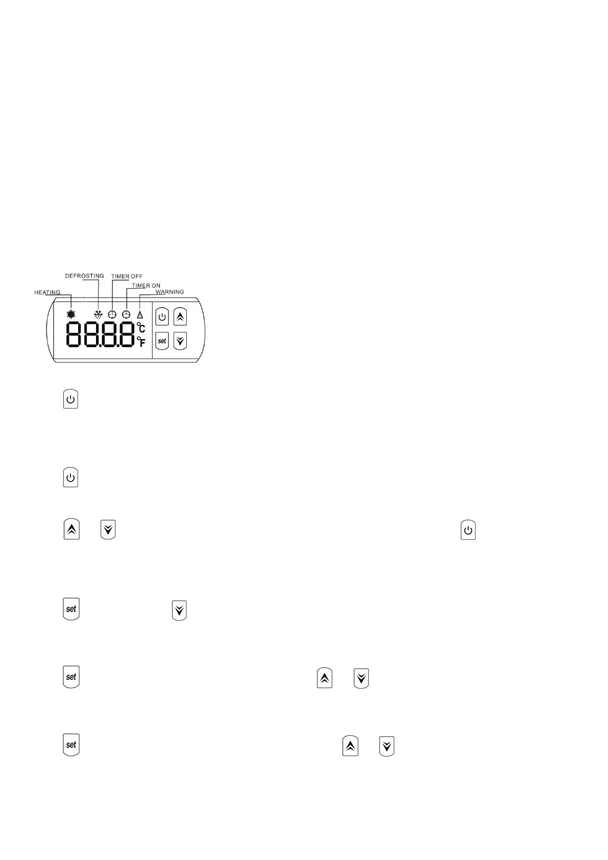 Press once again to stop the heat pump, the LED display shows ‘OFF’