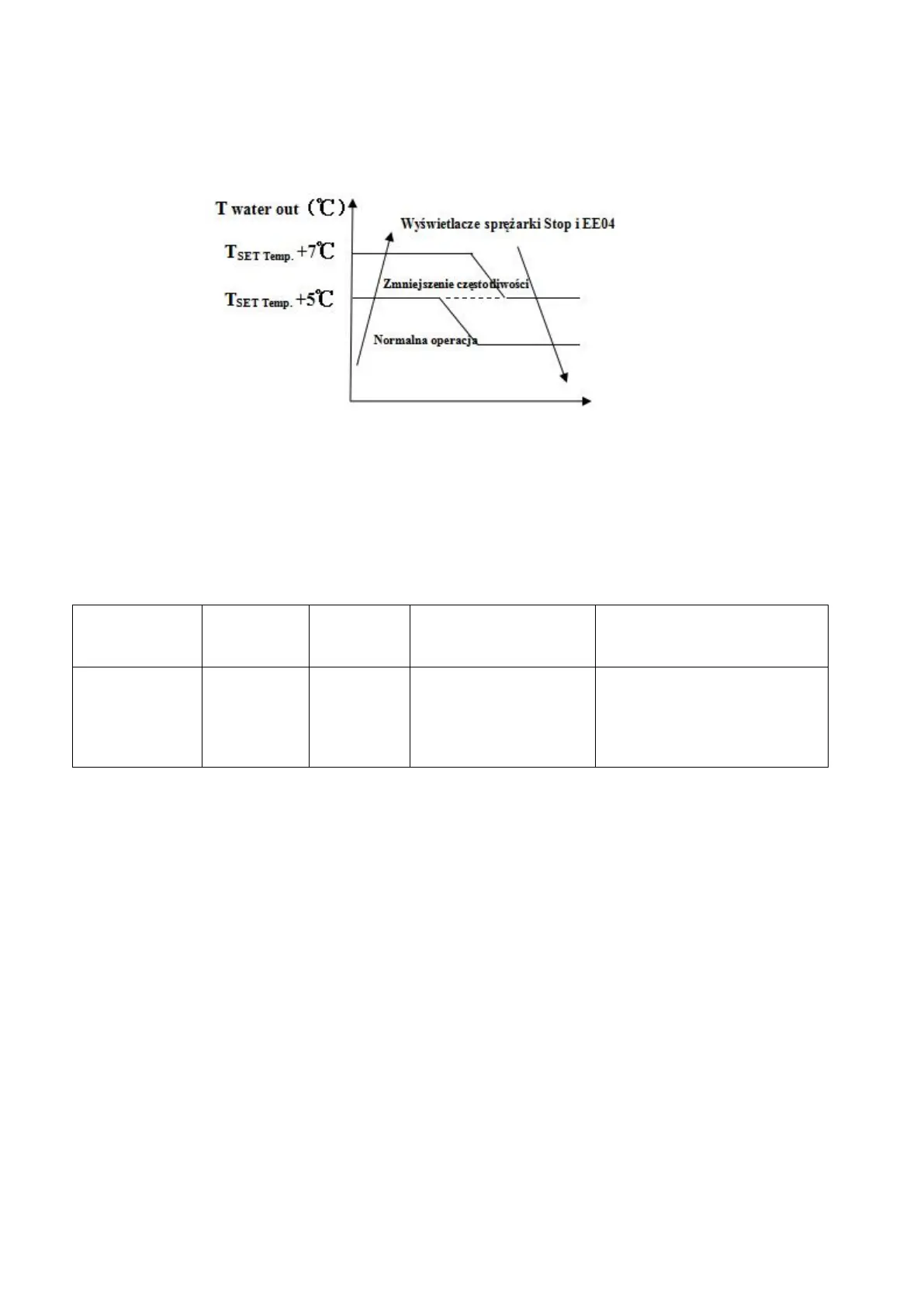 1.W trybie ogrzewania, jeśli temperatura wypływu wody jest wyższa od temperatury zadanej powyżej 7 ,
