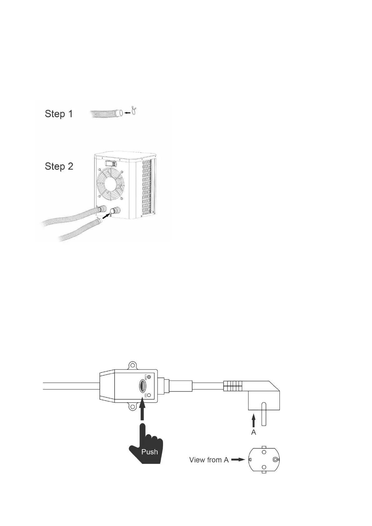 Das Werk liefert nur die Wärmepumpe. Alle anderen Komponenten, einschließlich zweier Schläuche, müssen
