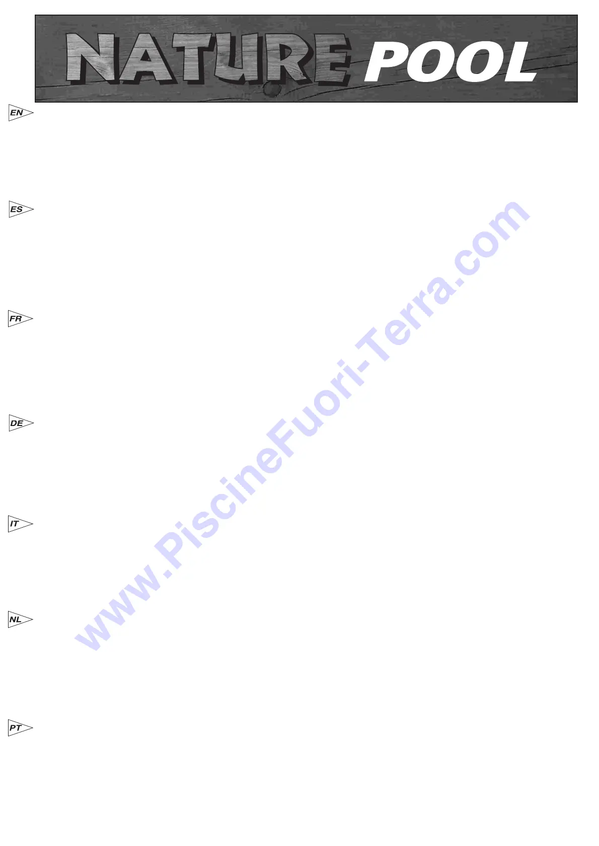 76/769/EEC. Once the swimming pool has been assembled, application is made of an open-pore treatment for timber. The product is WOODSTAINER KIT. Note: The wood may not be