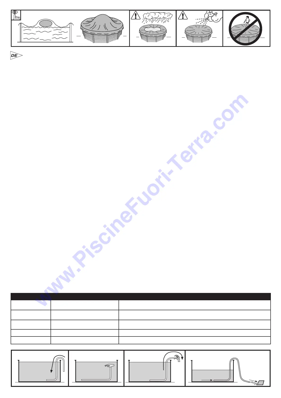 - Pool niemals vollkommen entleeren. Ein niedriger Wasserstand kann beträchtlichen Schaden am Pool hervorrufen.