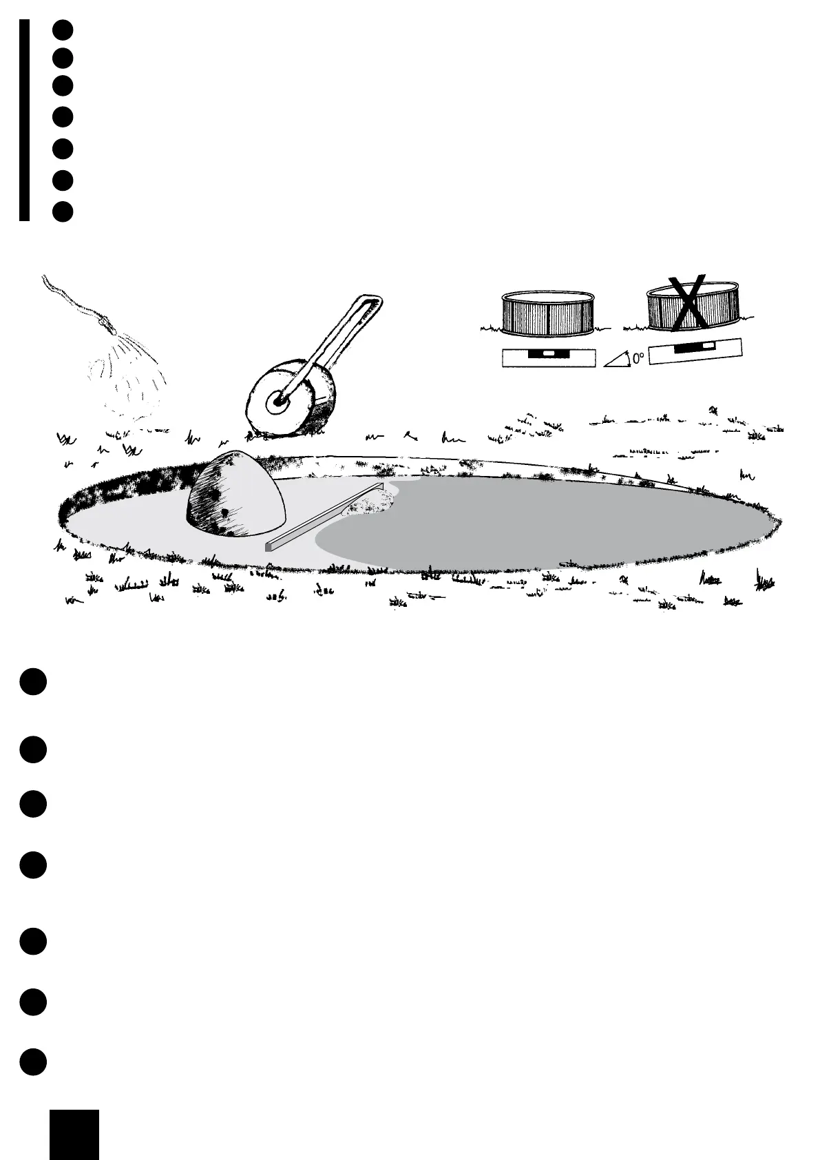 Non utilizzare la sabbia per livellare il terreno. La finitura deve essere perfetta.