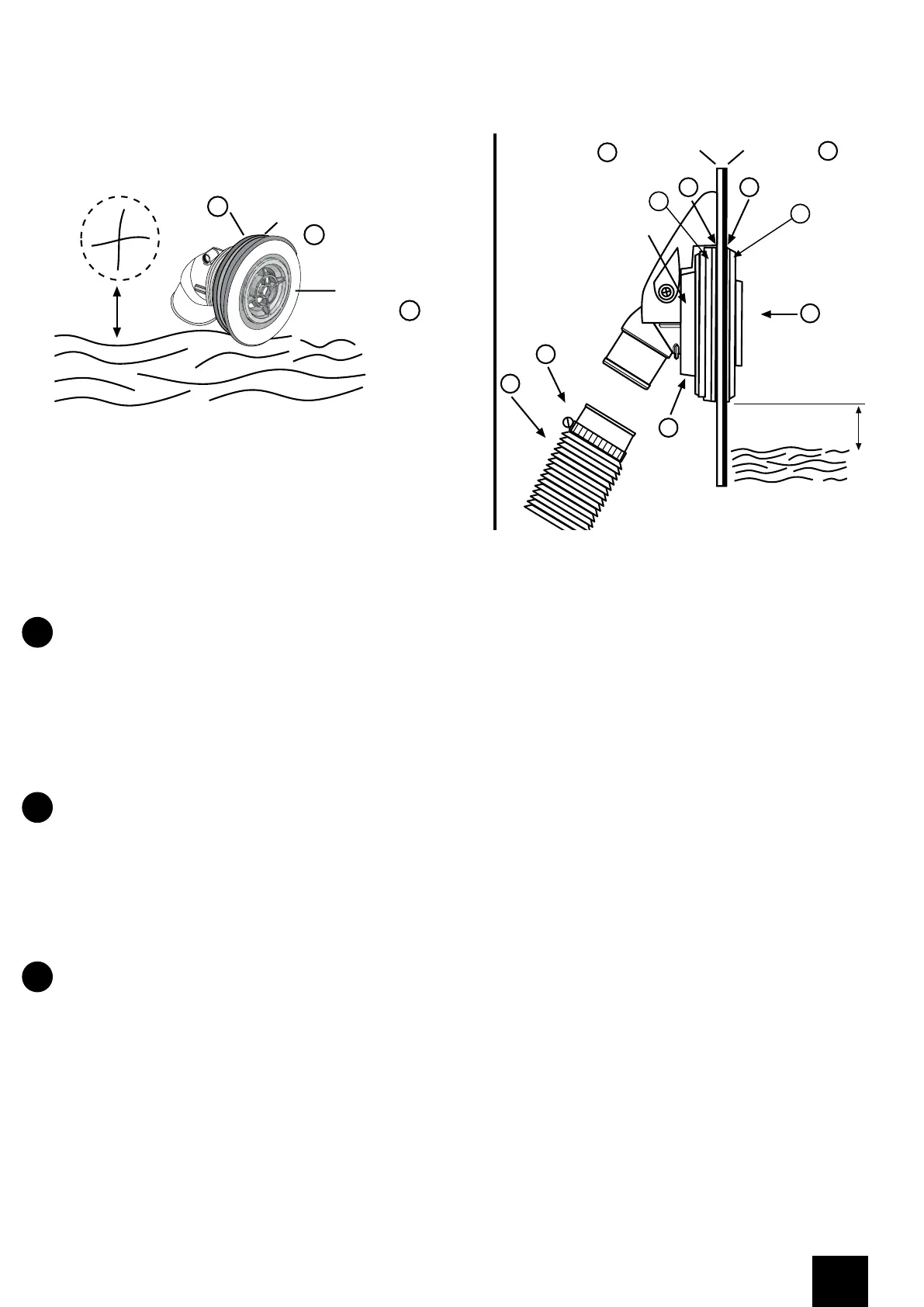 oltrepassare il foro del prestampato. Si inserisce all’interno della piscina attraverso la fenditura, con una giunta (J) e una rondella di