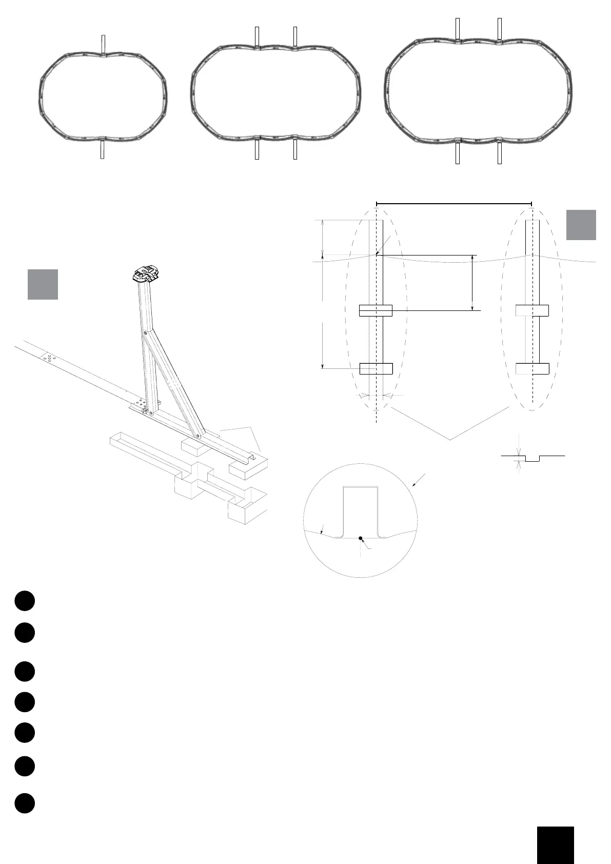 Controllare il disegno della piscina e le figure 2 e 3. Effettuare un piccolo scavo per posizionare i supporti verticali. I mattoncini (LO)