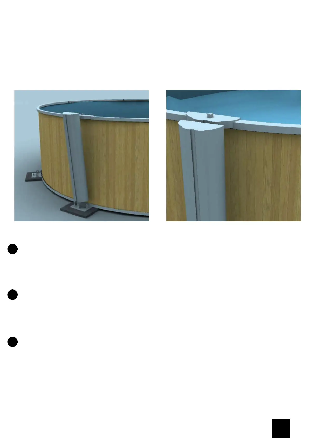 OPGELET: DE VERTICALE RAILS DIENEN PERFECT VERTICAAL KOMEN TE STAAN ROND HET HELE ZWEMBAD (GEBRUIK DE RAND VAN