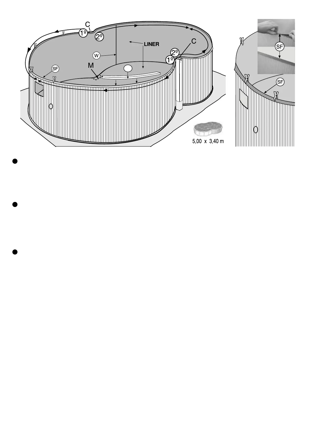 SISTEMAZIONE DEL TELONE (LINER PVC): Stirare ed estendere il liner (L) all´ombra perché riprienda la forma originale almeno 2 ore prima della sua sistemazione. Temperatura