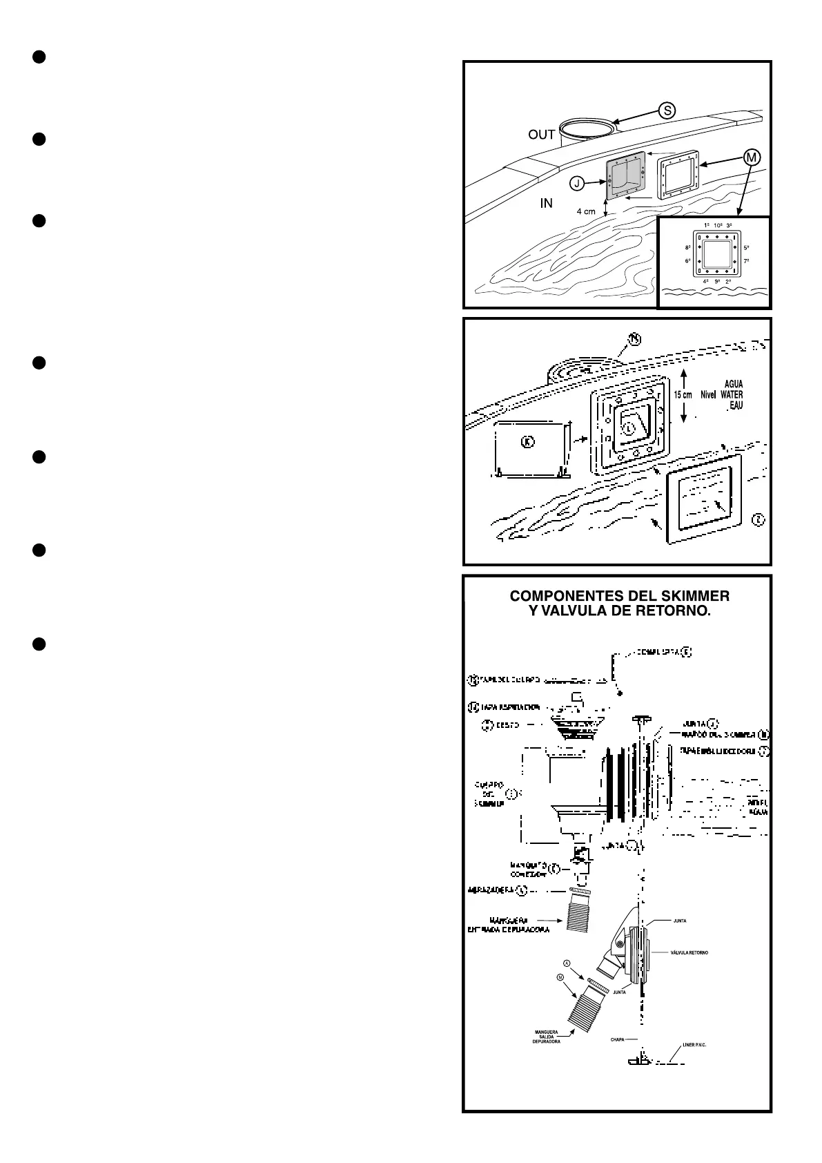 válvula (K) na boca do skimmer (carregar nas duas extremidades e encaixar). Instalar o