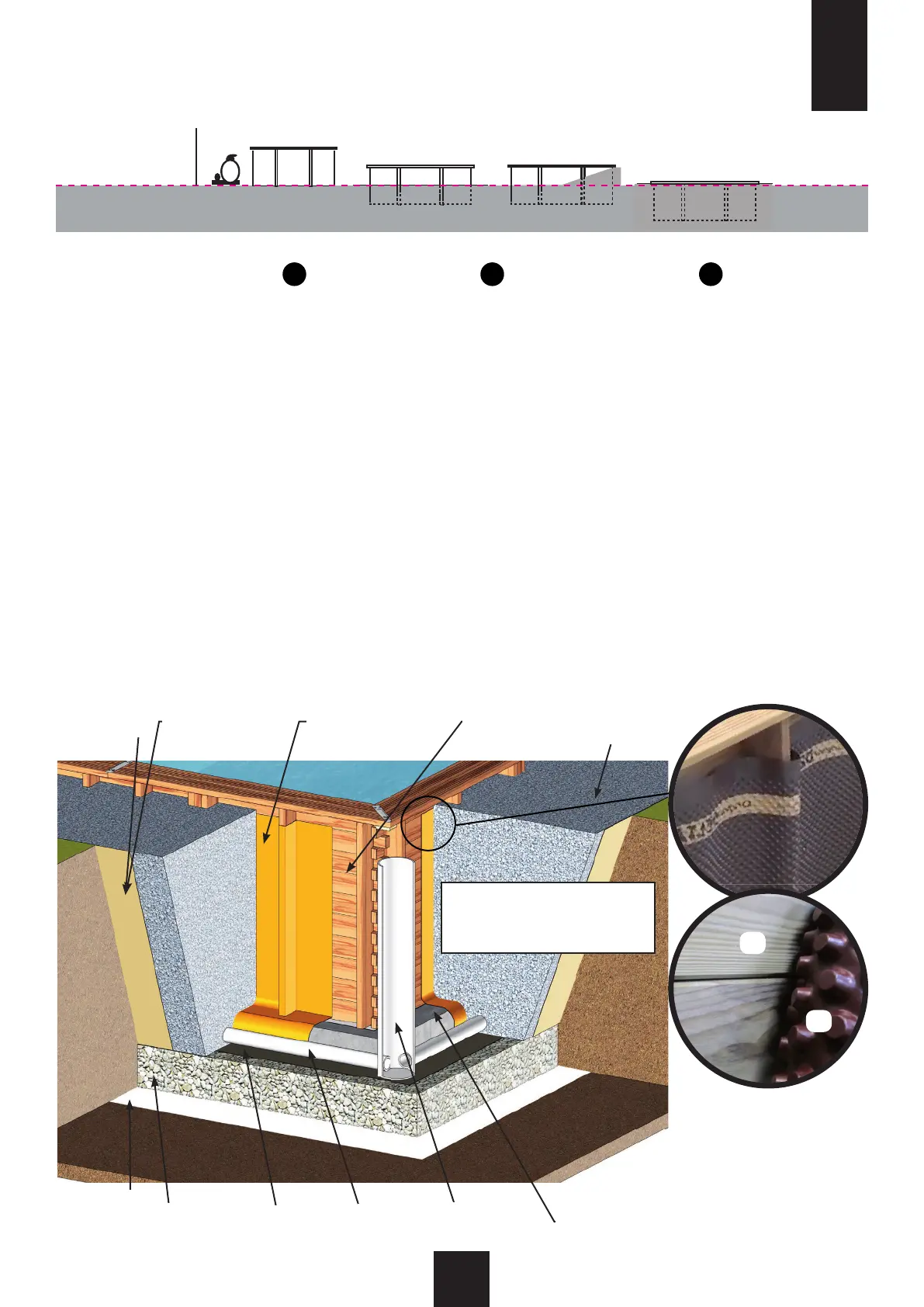 • În cazul în care piscina este semi-în pământ sau complet în pământ, instalaia ar trebui să utilizeze o placă de fundaie din beton. Dacă se folosește o placă