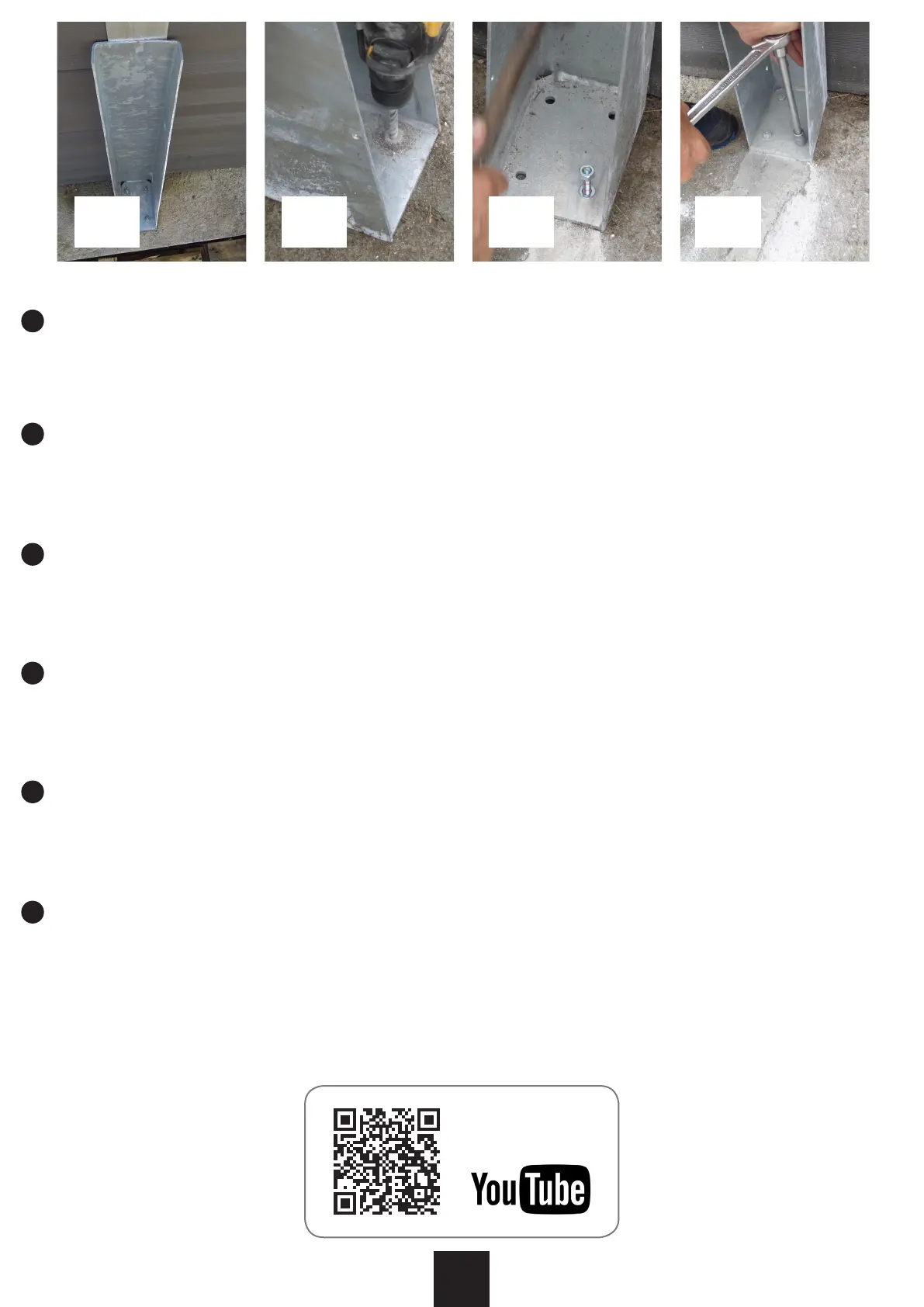 4). The depth of the hole should be at least 100mm to guarantee good xing.•Place the xing bolts (with wachers and nuts) into the holes and x them with the help of a