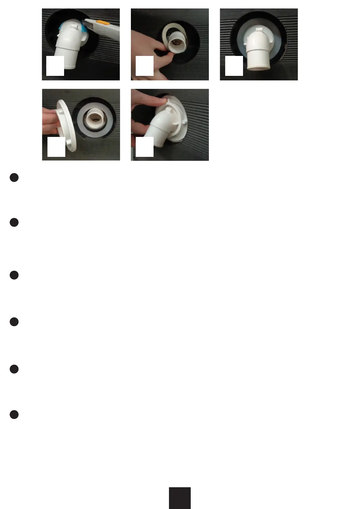To properly insert the nut from the exterior, the person located inside the pool holding the return valve, should slightly move backwards to x the nut with the