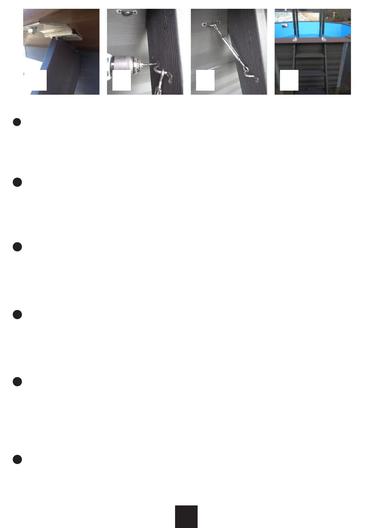 - Căutai cârligul și introducei-l așa cum se arată în fotograa 44. Urmai aceeași procedură pentru a-l xa de balustradă (foto 43).