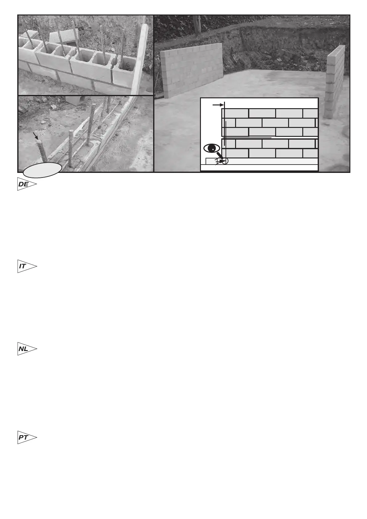 Tutti i vuoti dei blocchi devono essere ricolmati di calcestruzzo.