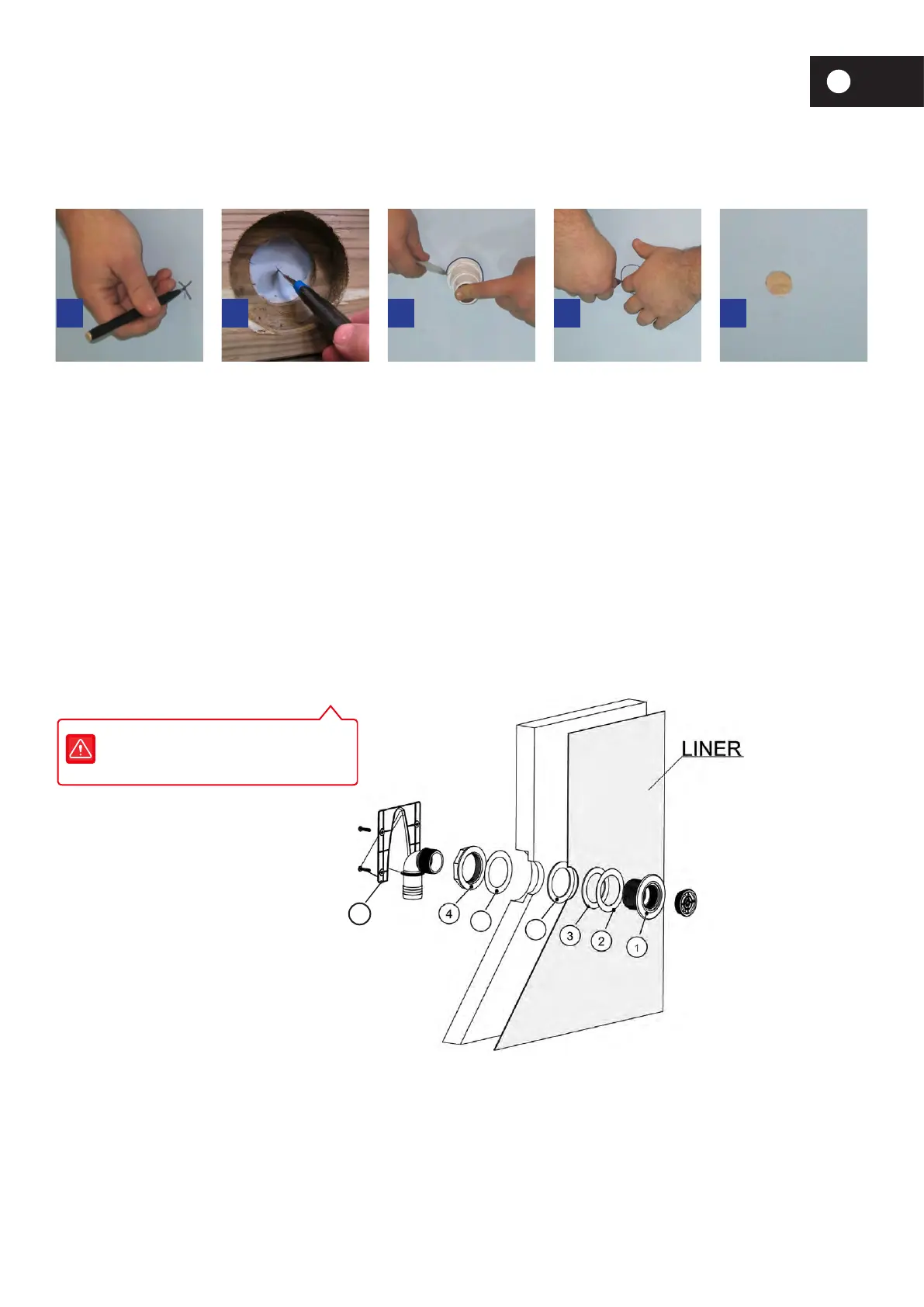 Commencez à remplir la piscine d’eau, en arrêtant le remplissage à 4 cm environ du bord inférieur de l’orifice