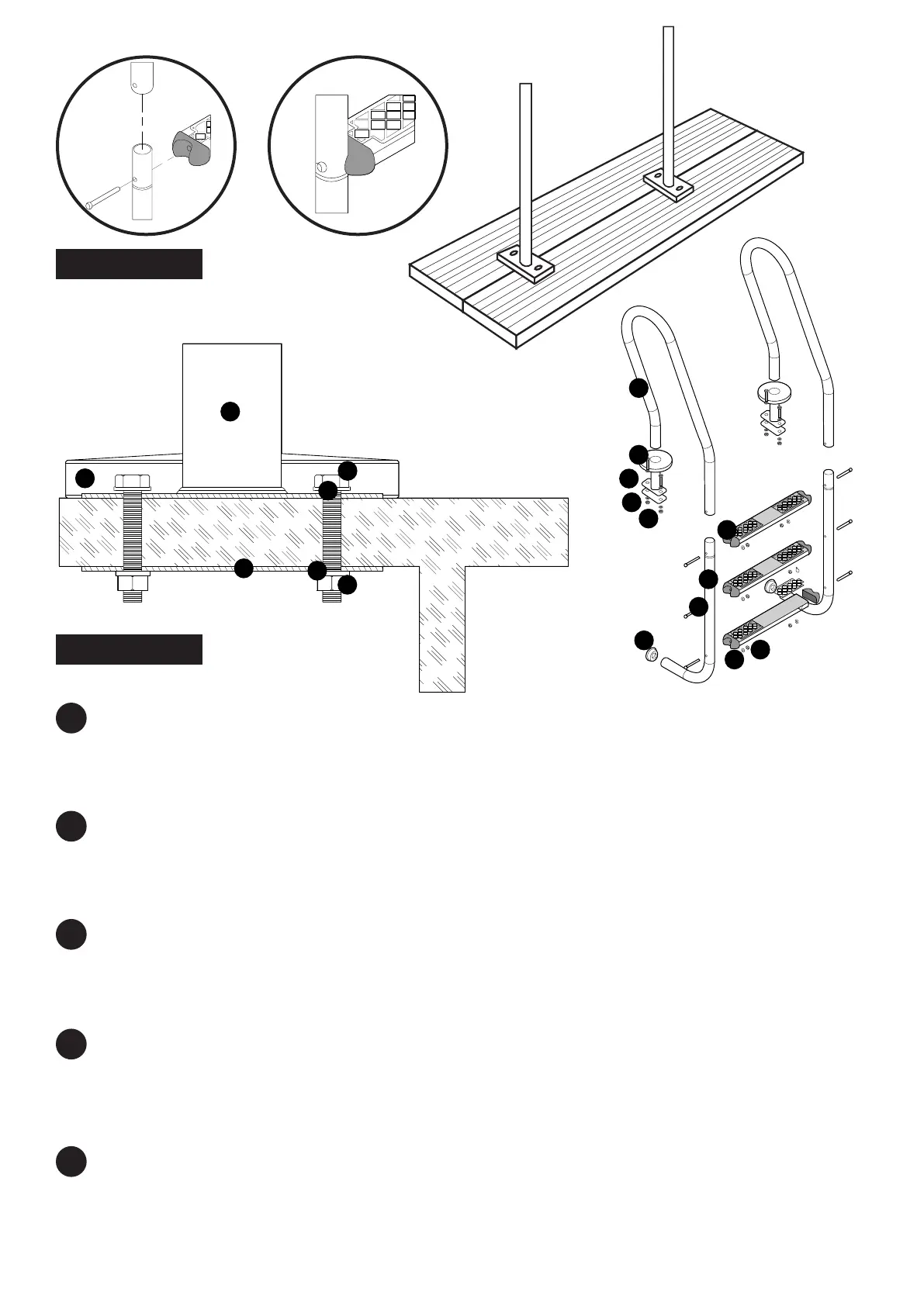 B.- Monter les butées (12) de la rampe, pour éviter que l’escalier puisse abîmer la piscine.