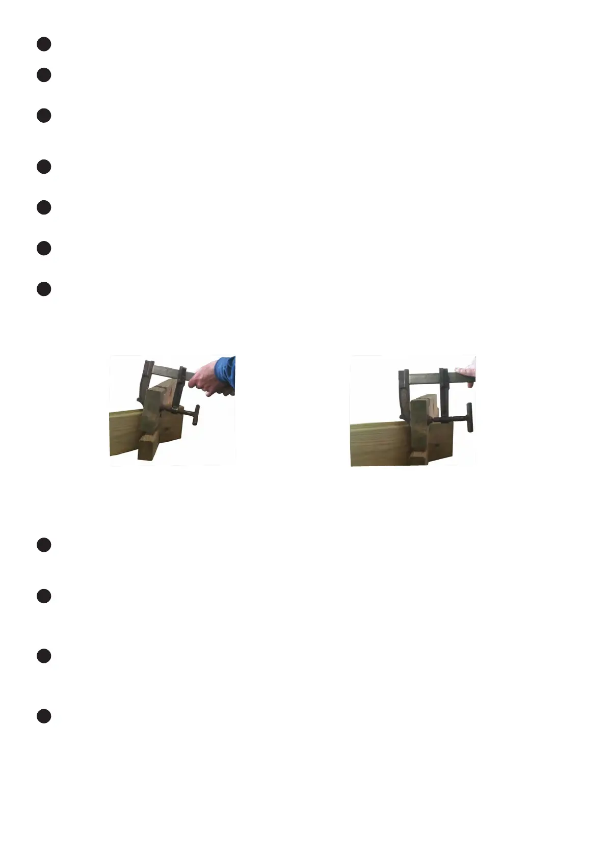 passos: • Situe e engate um dos dois lados da tábua. • Redirija o outro lado com a ajuda de um aperta-juntas. • Encaixe a tábua ajudando-se com um