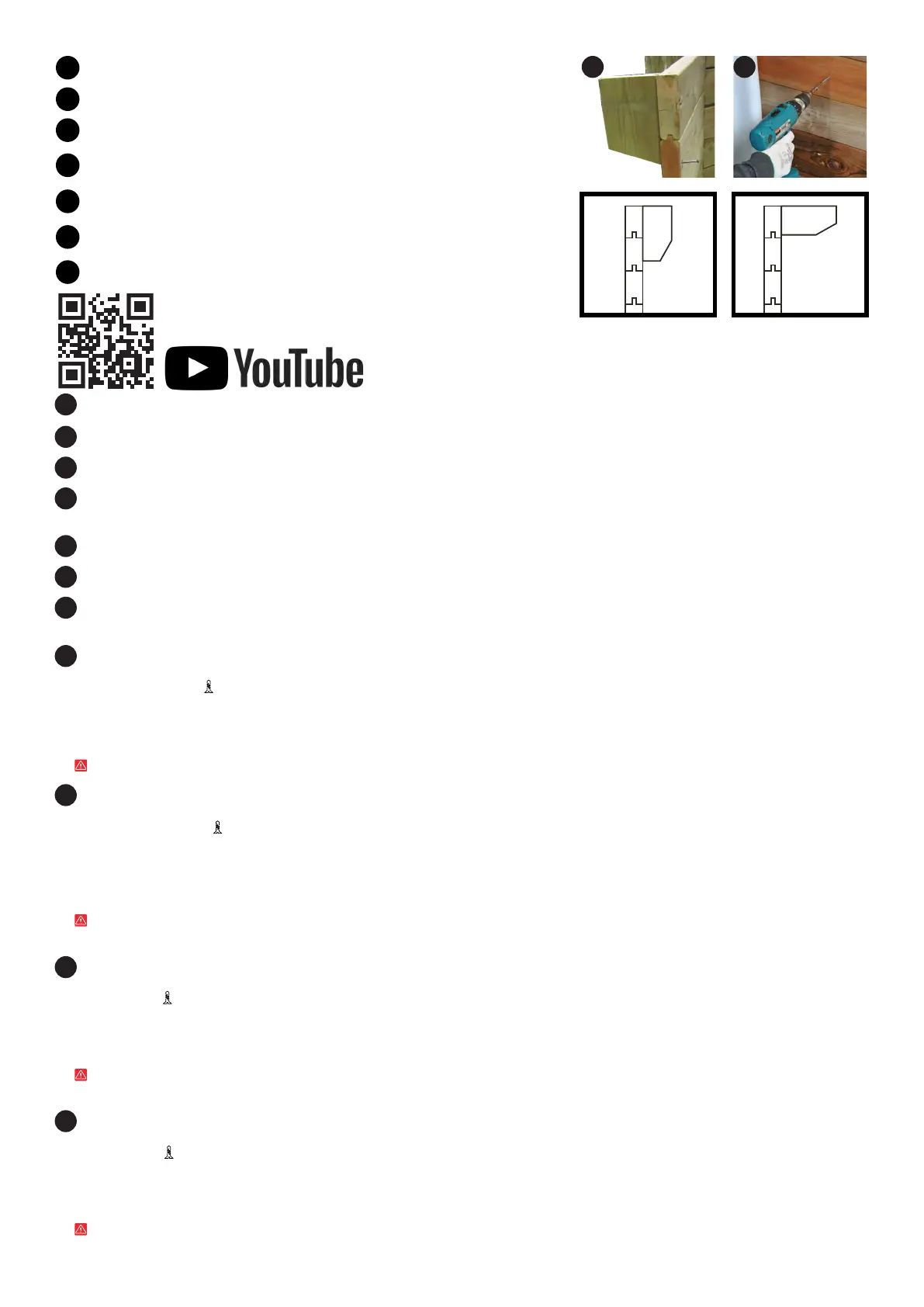 B• Drill the boards with a Ø 6 mm bit for wood from inside the pool.