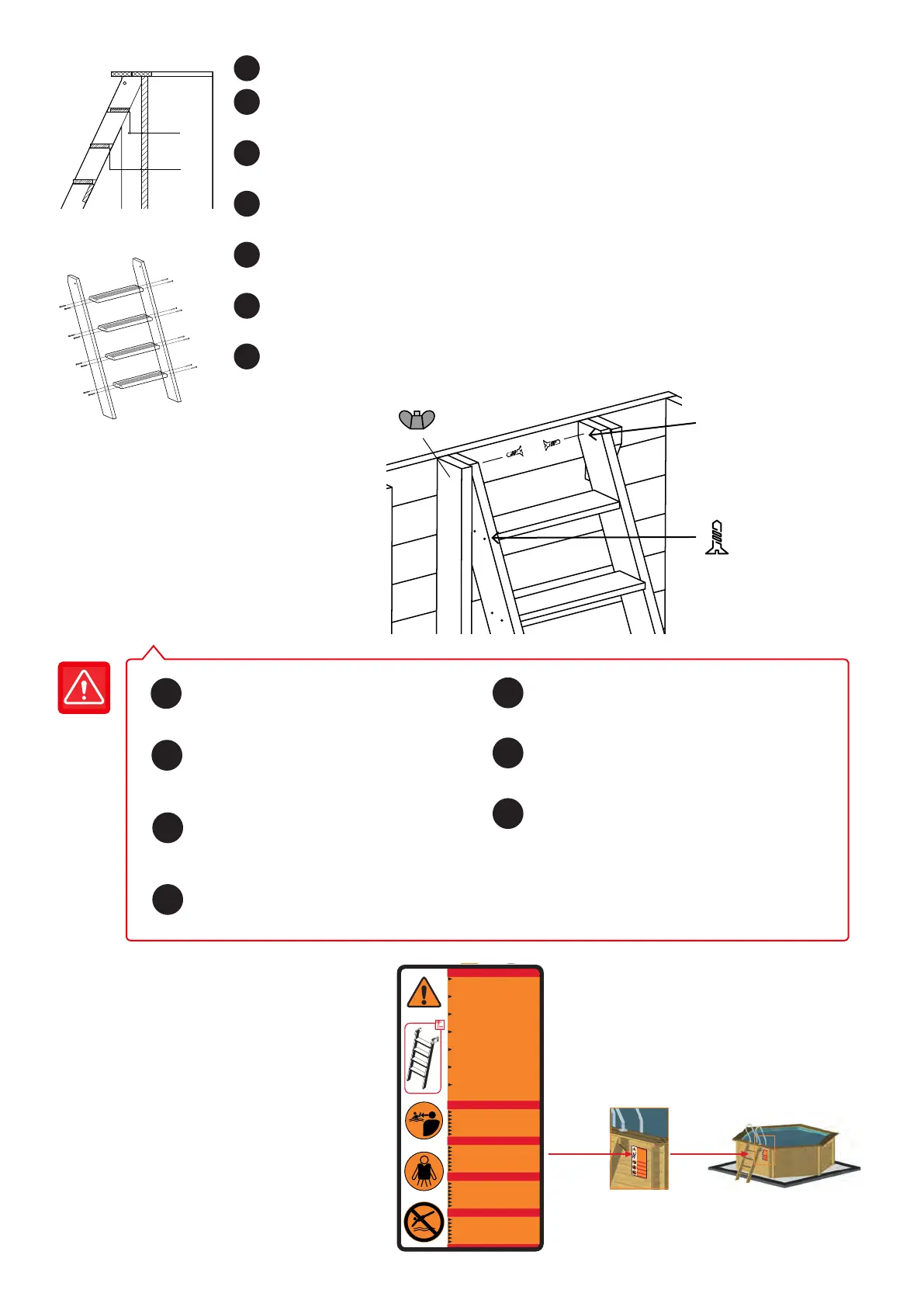 PISCINE. NE PAS NAGER AUTOUR OU DERRIERE LíECHELLE.