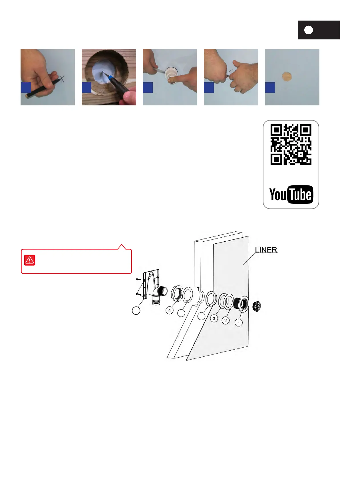 Mark the hole with a felt tip pen (A) and cut a cross in the centre of the opening (B) with a cutter (BLADE),
