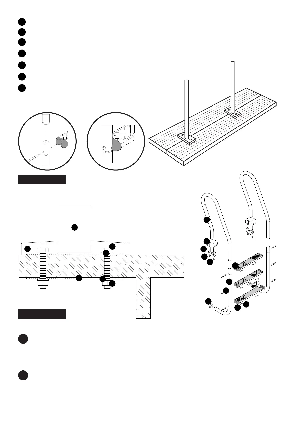 B.- Assemble the end pieces (12) of the handrail so that the ladder cannot damage the pool.