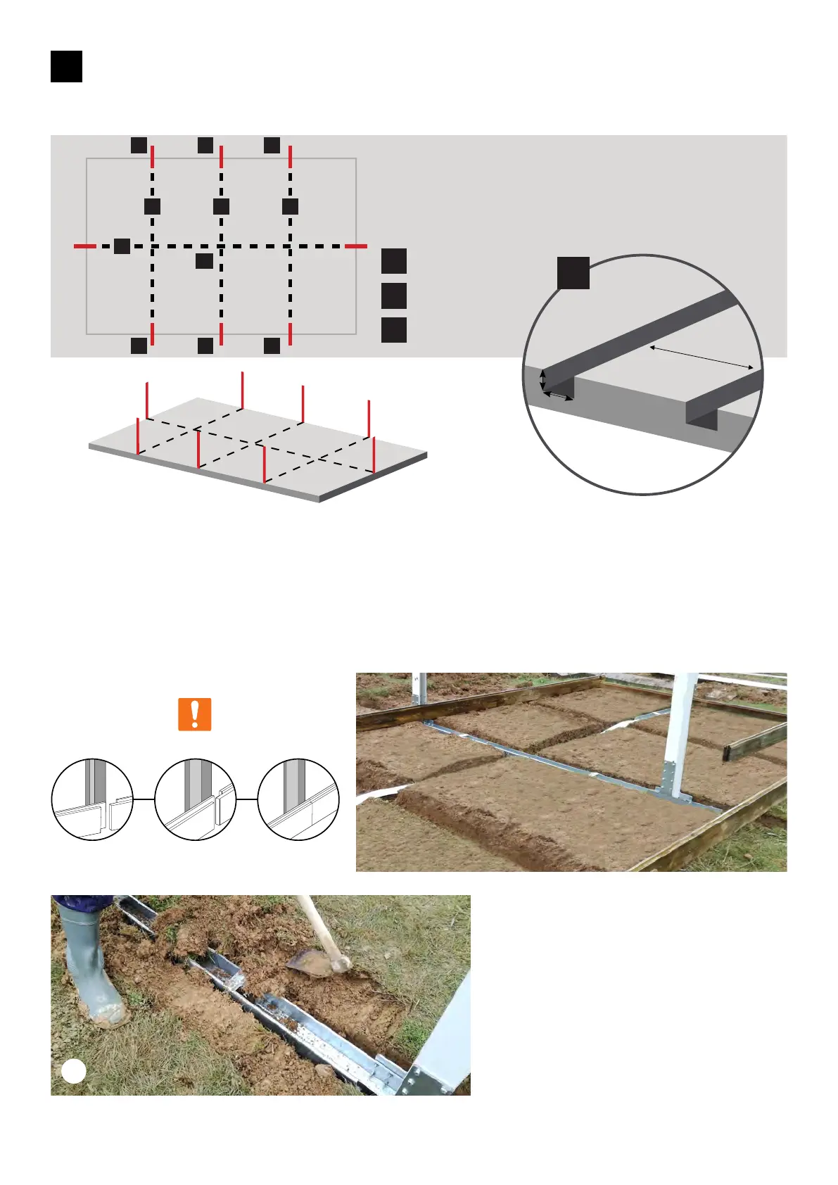 EXCAVATION OF THE TRENCHES (Z) FOR THE COLUMNS (C) AND METALLIC STRAPS (CN).