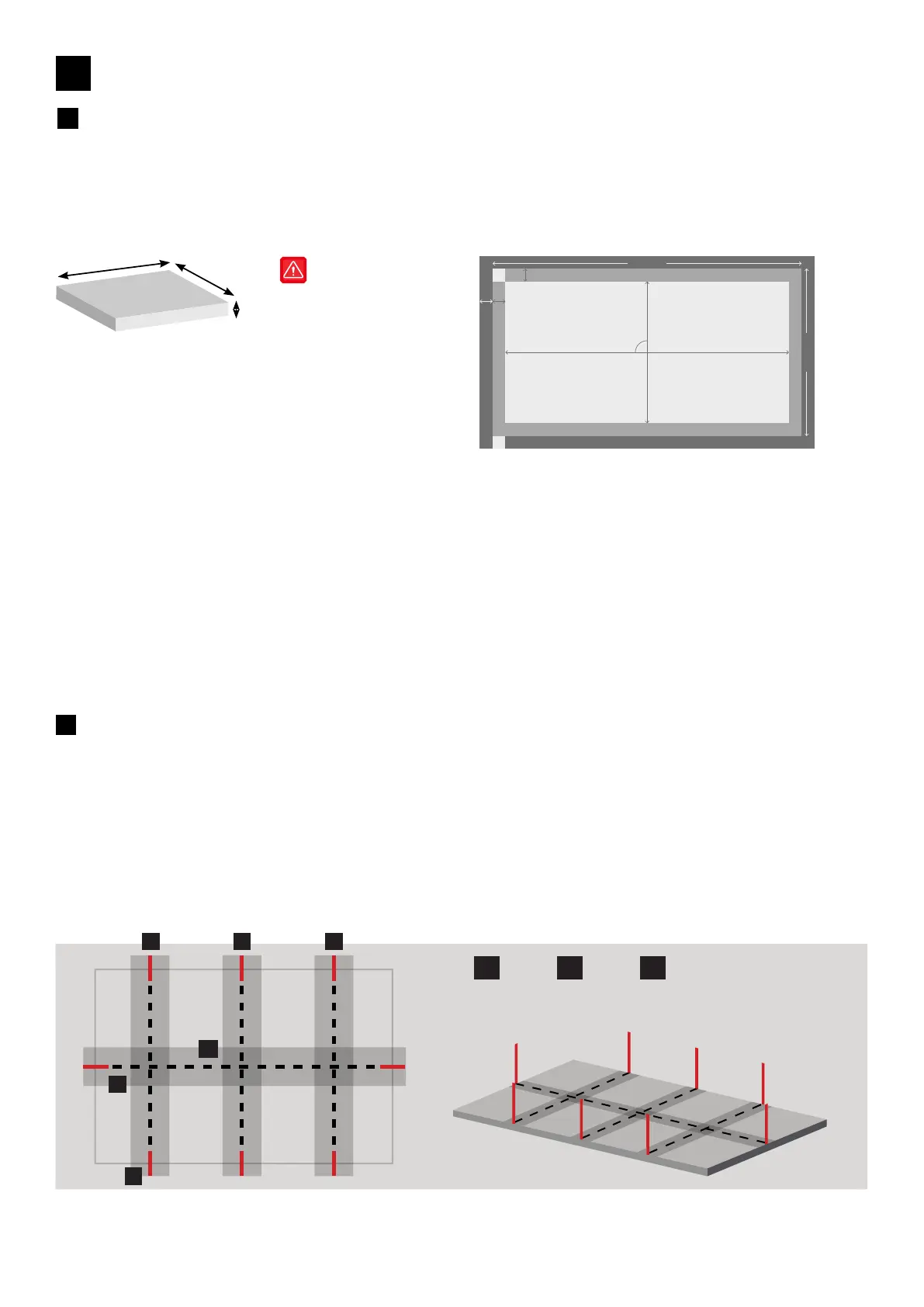 Lightly draw a rectangular surface according to the dimensions indicated in the table.