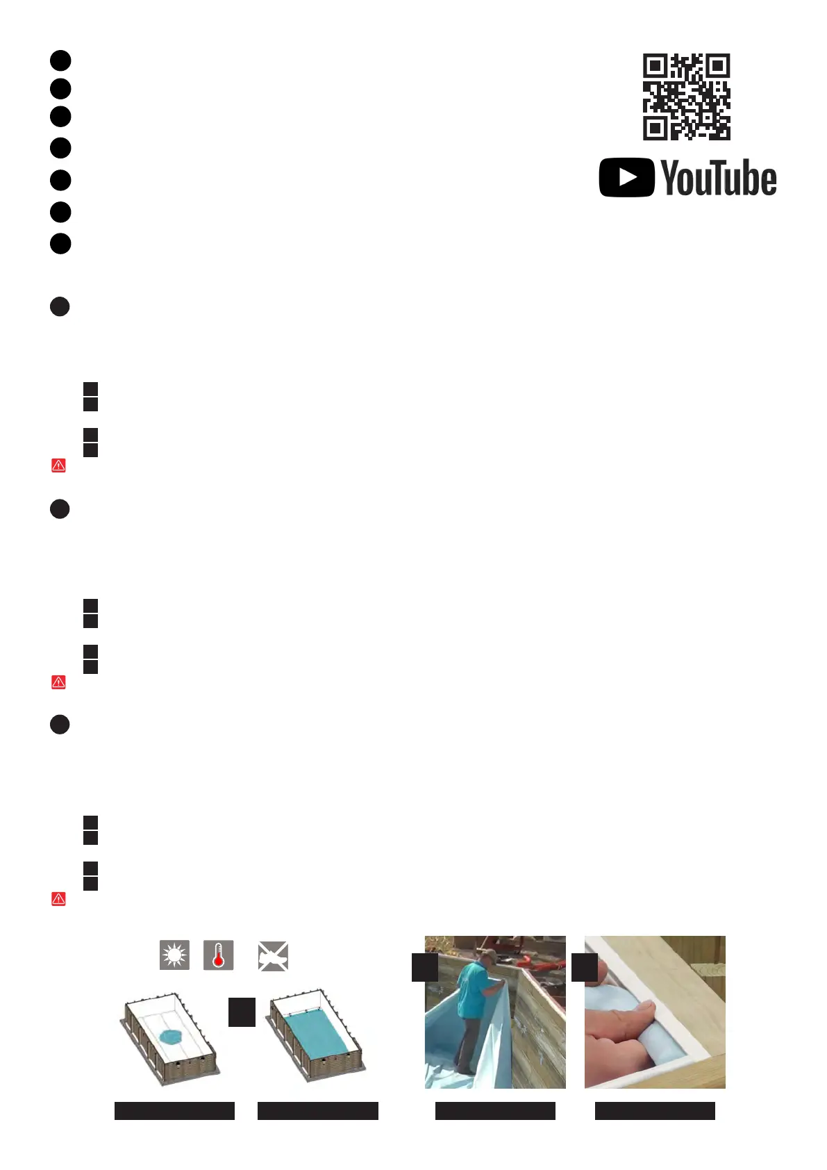 Votre liner devra avoir séjourné au minimum 24 heures à une température ambiante d’au moins 20ºC avant sa mise en place. La pose de votre liner doit être effec-