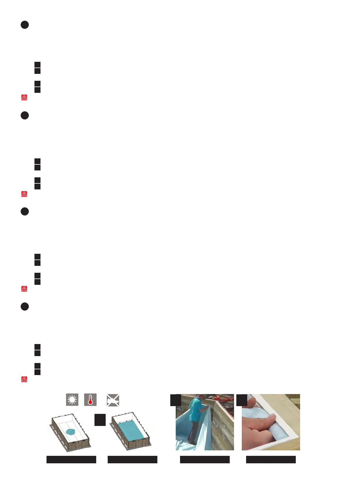a quelle dell’interno della vasca, affinché il liner una volta posizionato sia teso. È necessario che il posizionamento del liner si effettuato a una temperatura esterna