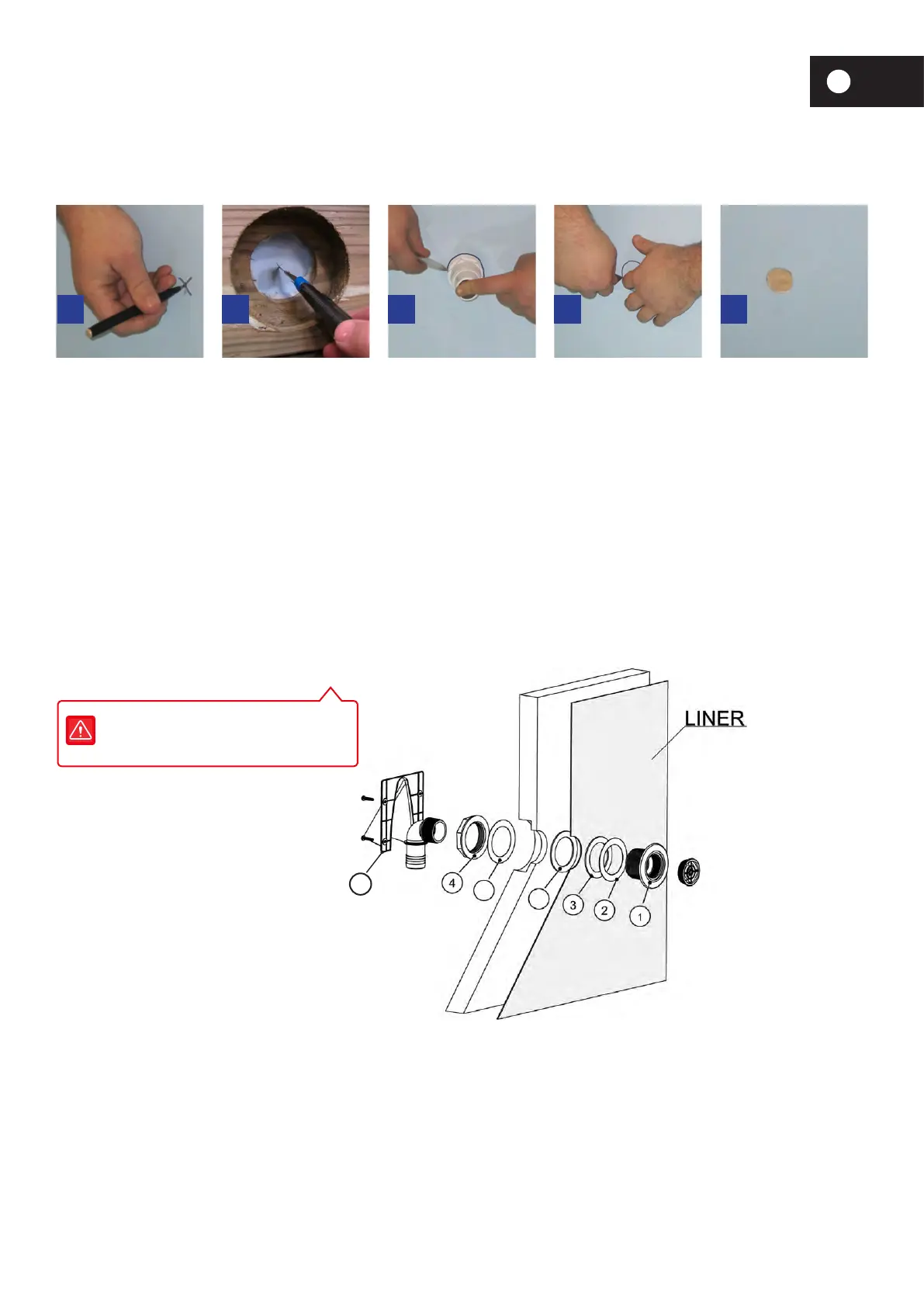 Füllen Sie das Schwimmbecken weiter mit Wasser, bis der Wasserstand von 4 cm unterhalb der Stanze des Skimmers am Holzes des Pools erreicht ist.