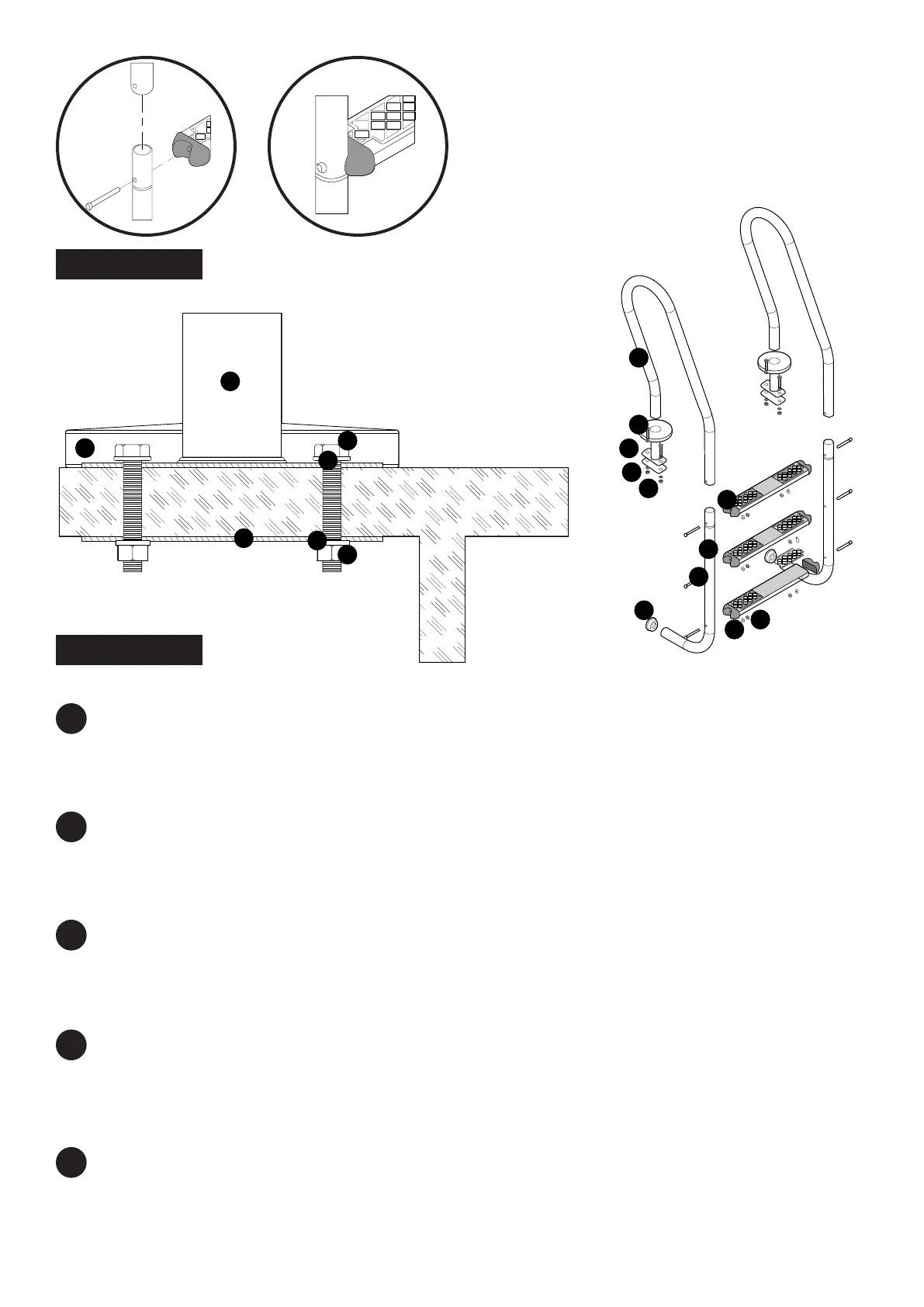 B.- Monte as protecçôes (12) do corrimâo para evitar que a escada possa danificar a base da piscina.
