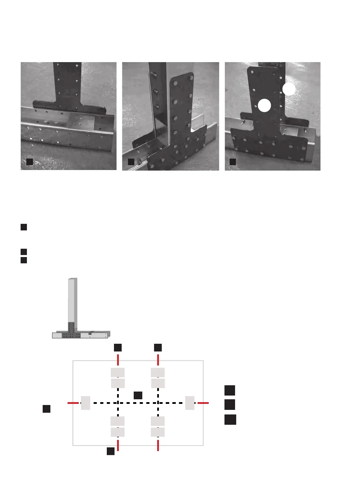 Plaats onderdeel PEU2 op die manier dat de vier open gaten aan de zijkanten samenvallen met de tweede en derde