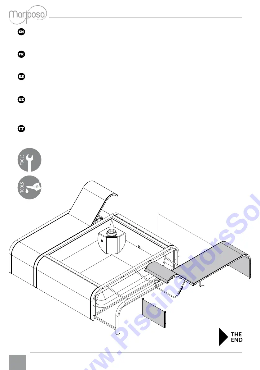 Reassemble the sunbed by turning it 180°, tightening the screws evenly a little at a time.