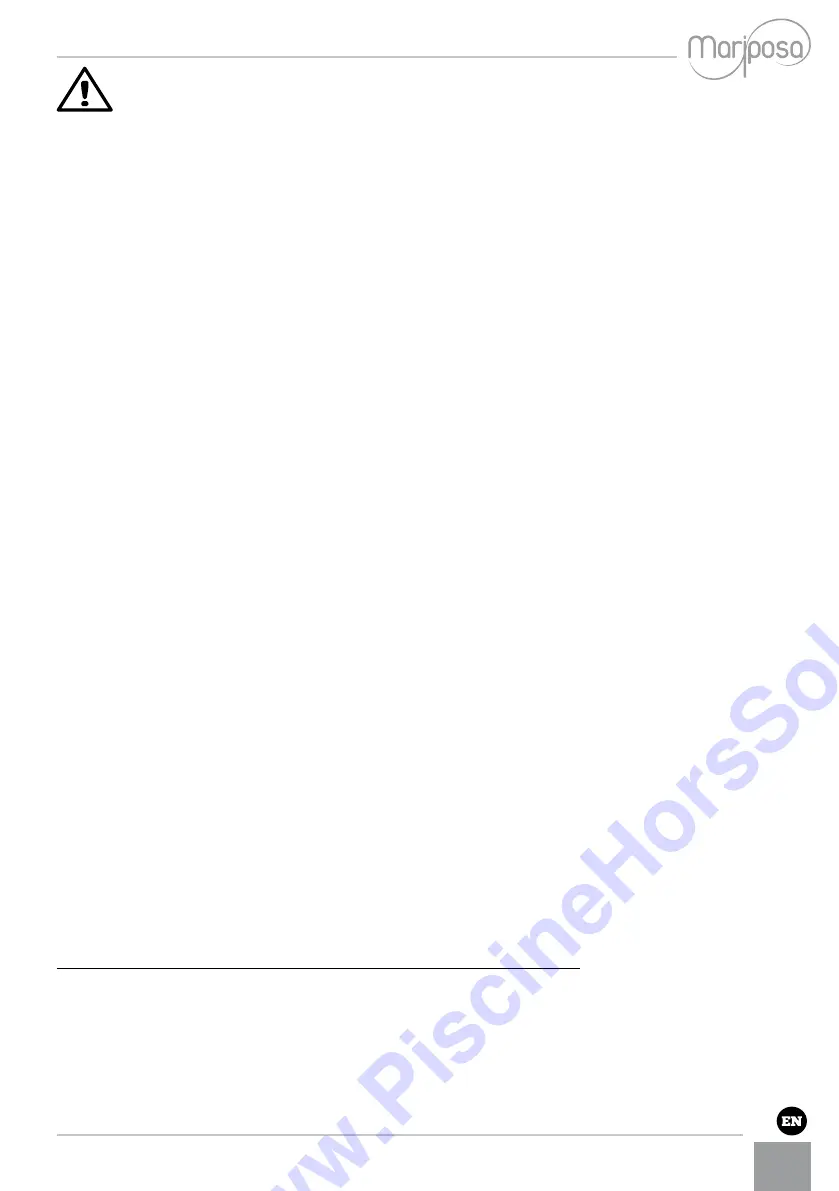 • Before carrying out any work on the mini-pool, be sure to have disconnected the power supply.