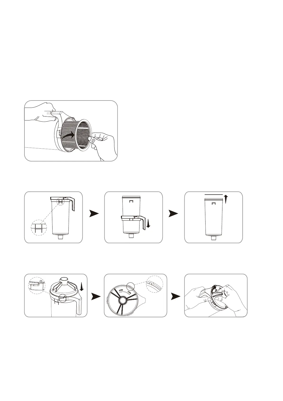 6. Tras haber limpiado el cestillo, colóquelo en el cuerpo. Alinee los tres puntos de la tapa con las tres ranu-