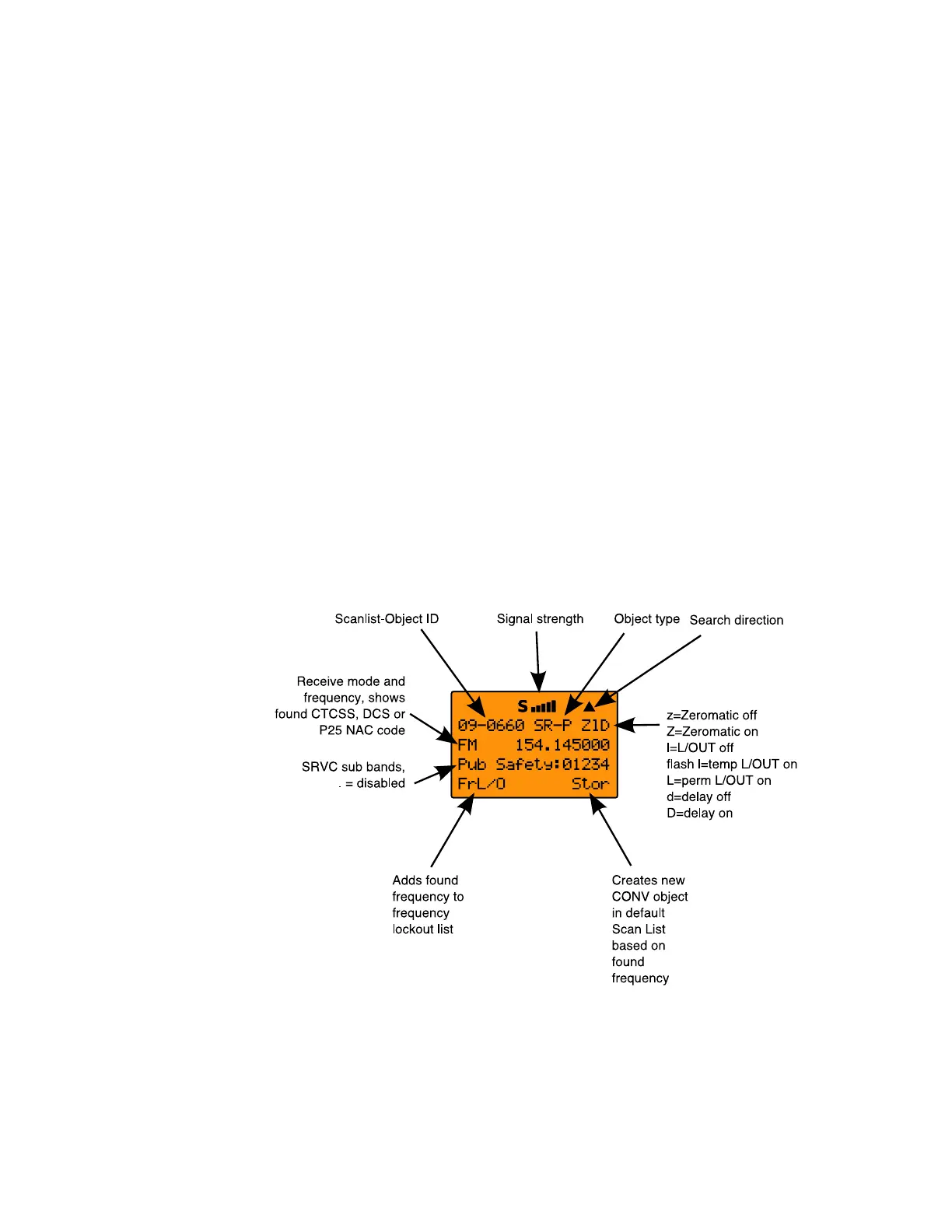 When the SRVC search stops on an active frequency, the display