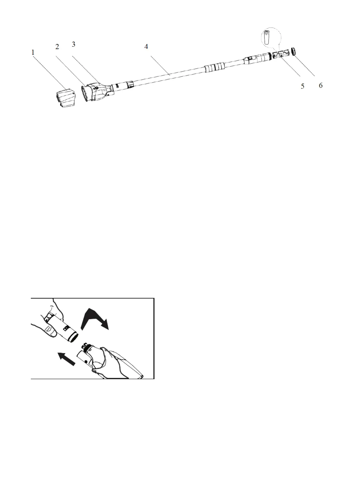 1. Vissez la tête de succion à l’extrémité du mât télescopique [Figure A].