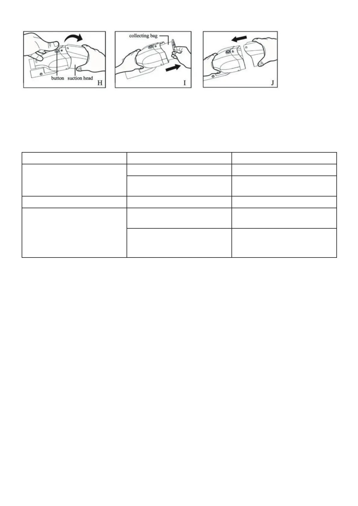 Small suction Check battery capacity Replace new battery