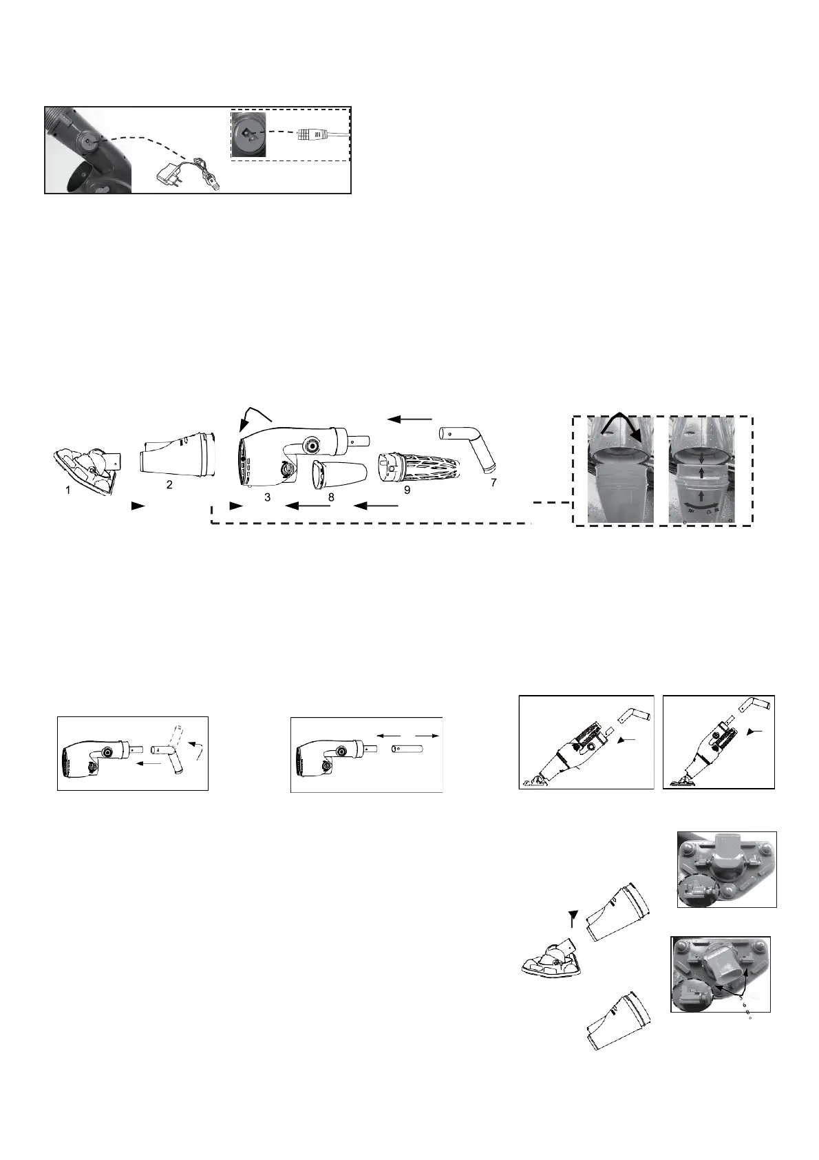 Insert the Suction Head directly to the suction hole of the cleaner tightly by hand.